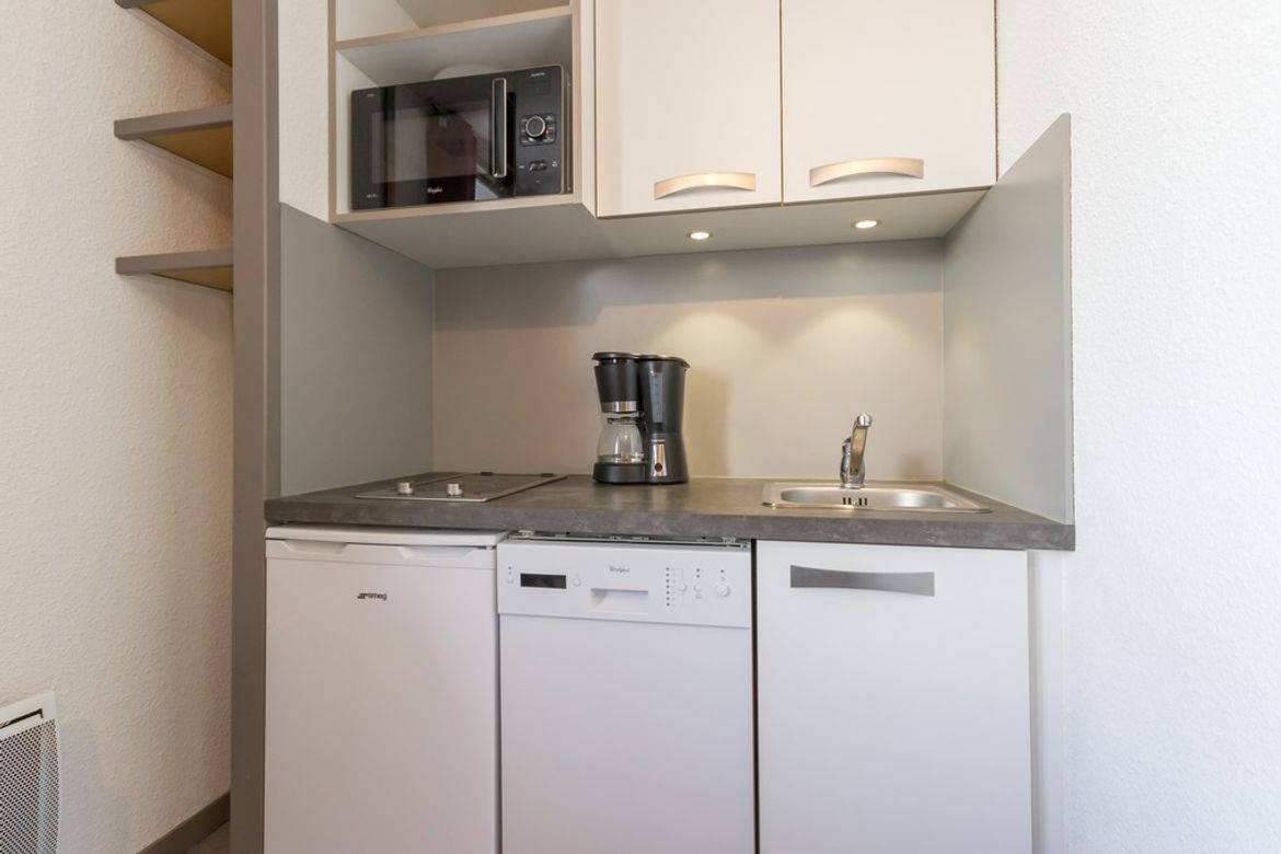 Description: In a residence center, the slopes, close to shops, renovated studio, located on the 2nd floor with lift, balcony valley view. Collective ski locker on the ground floor. Equipment: Kitchen with 2 ceramic hobs, microwave oven, refrigerator, dishwasher, toaster, electric kettle. Bathroom ...