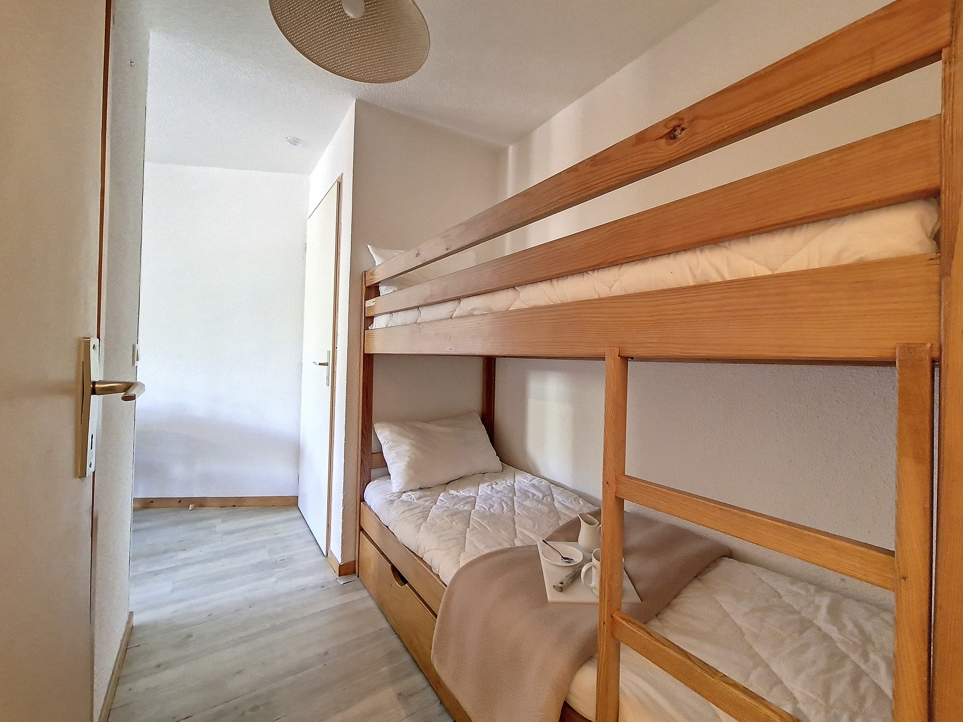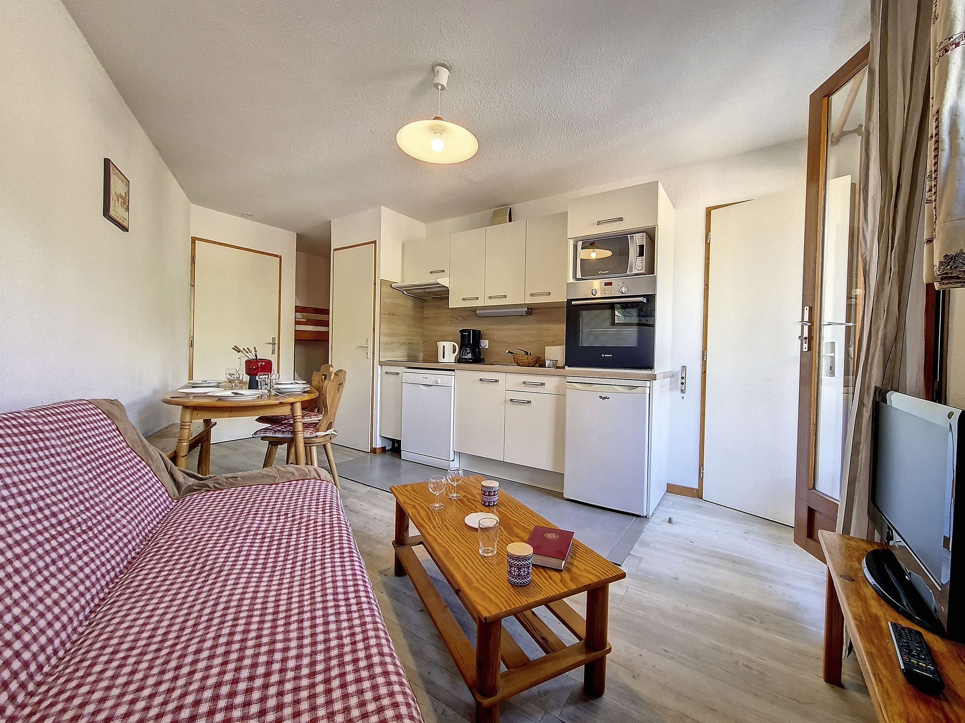Apartment with 2 rooms, 30 m², sleeping for 4 persons. it is located in the village center near the shop and all the services. It has a West-facing balcony and is located on the 1st floor (no lift) of the residence Resort Quality Label : 2 ** silver Bedroom : 1 double bed Cabin : 2 bunk beds. Bu...