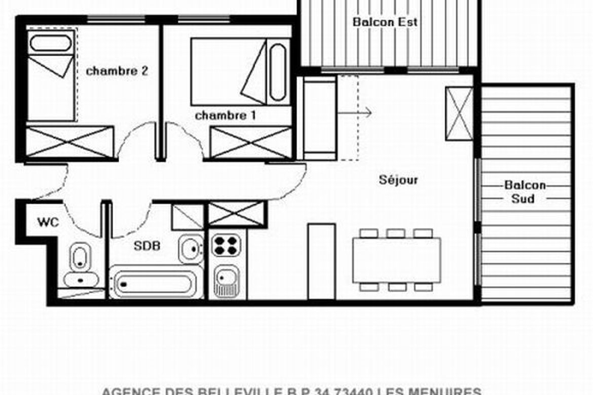 Charming apartment with 3 rooms, 50 m², sleeping for 4 persons. It has 2 south and east facing balconies, with direct access to the slope. It is located on the first floor without lift. Residence le biolley is located in the village center next to the shops and services. Resort Quality Label : 3 **...
