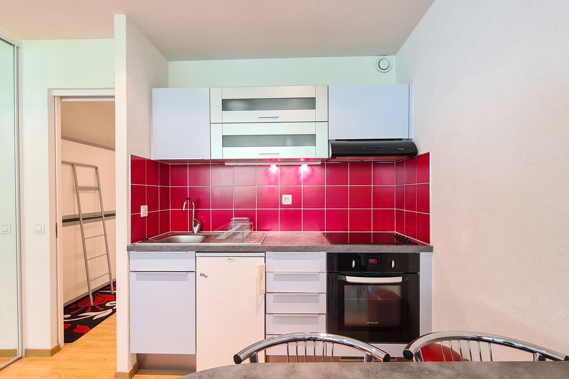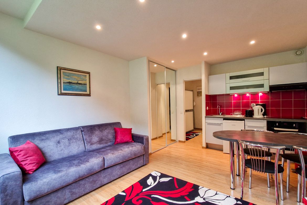 Beautiful apartment 25 m2 on 7th floor fully renovated, North facing without balcony Parquet floor - Equipped for 4 people - Entrance : 1 set of bunk beds - Living room: 1double sofa bed (160x190cm) - Flat screen TV - Bathroom with shower and toilet - Kitchenette with 4 hotplates and oven - Ski loc...