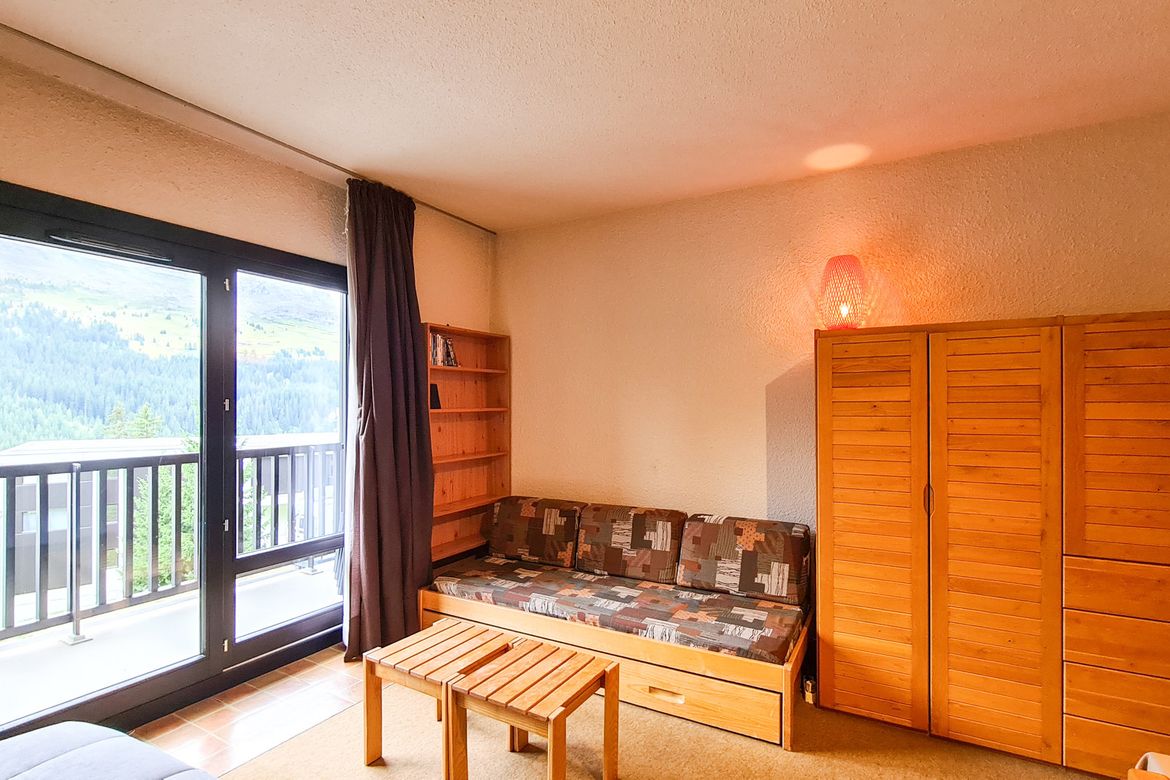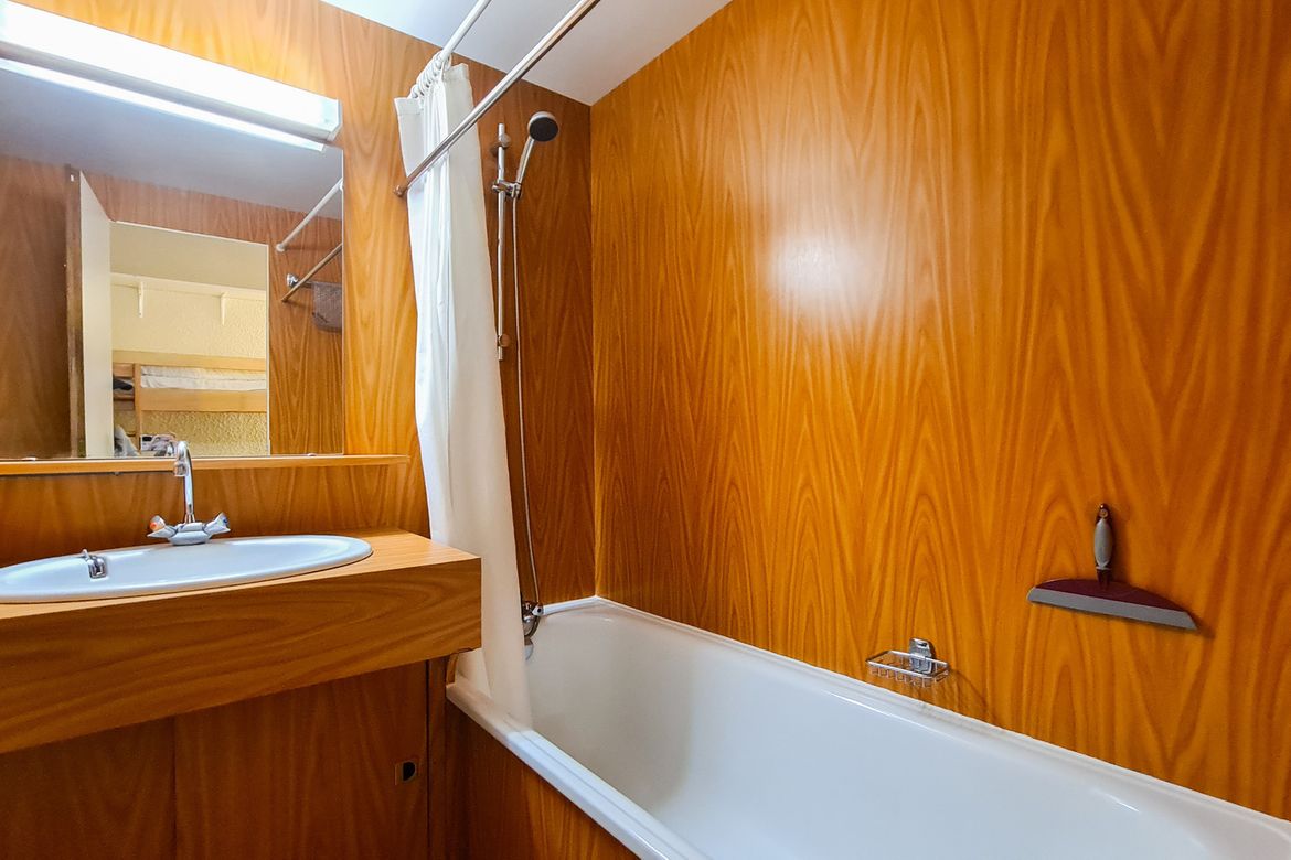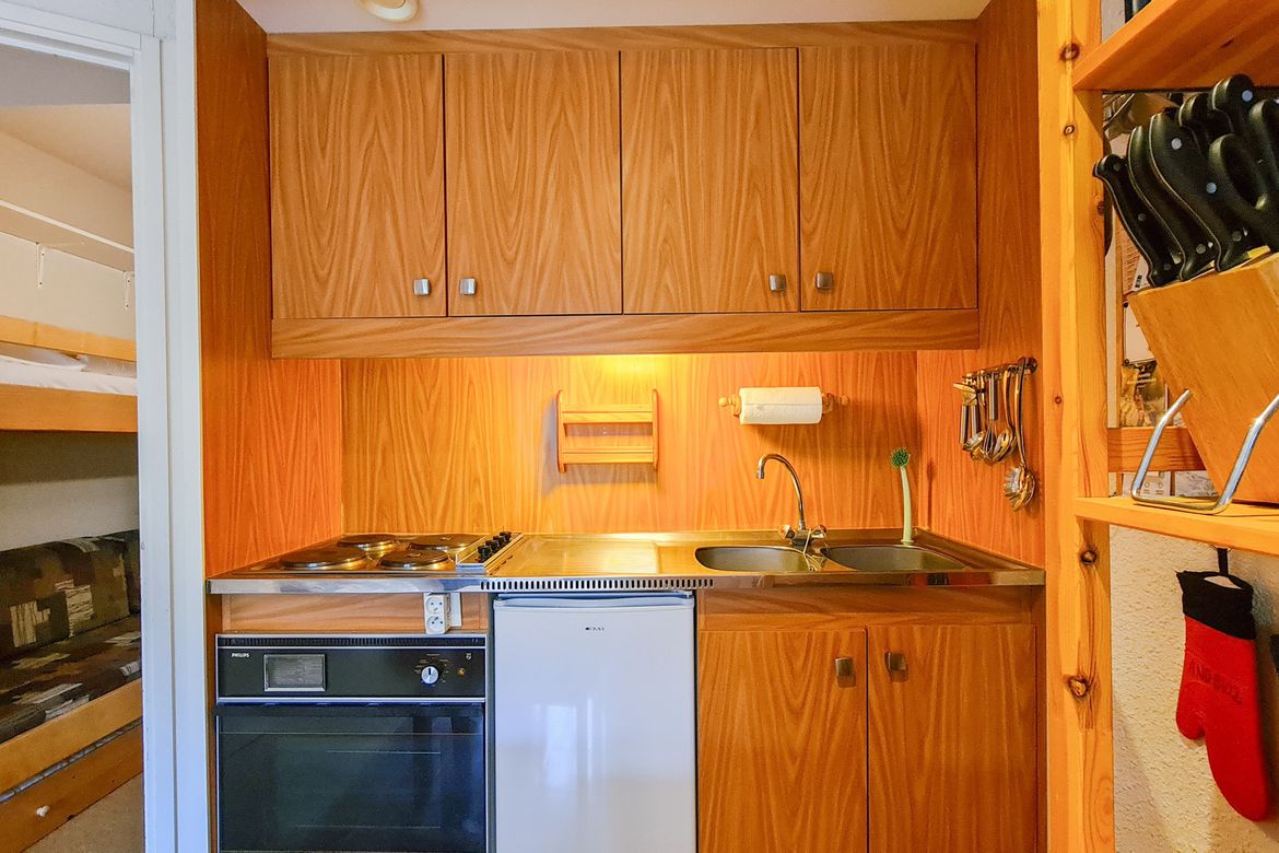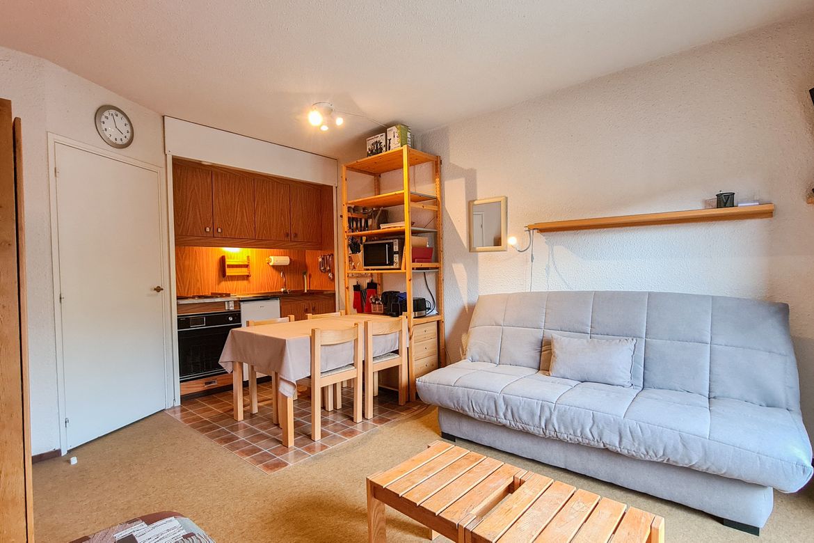 Studio 25 m2 on 1st floor with south facing balcony floor: carpet - Equipped for 4 people - Entrance : 1 set of bunk beds - Living room: 1 double sofa bed , TV and DVD player - Bathroom with bath and toilet - Kitchenette with 4 hotplates, oven, microwave, Nespresso coffee maker - Ski locker - Beddin...