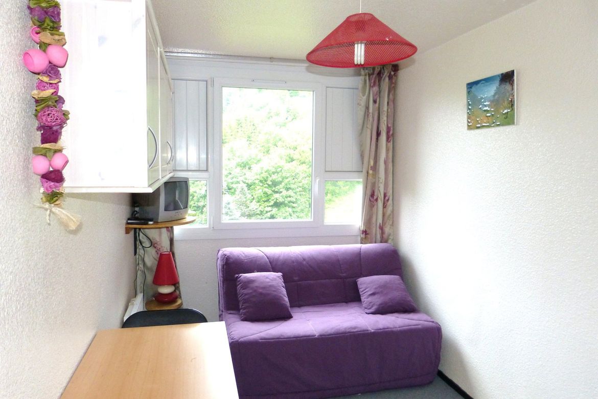 14m² studio for 2 people, located in the Vostok Residence, on the 10th floor, with south-facing slope view. Includes an entrance, a bathroom with toilet, a kitchenette equipped with 2 electric hobs, a refrigerator, a microwave, a mini oven, a toaster, and a coffee maker. Living room with a double so...