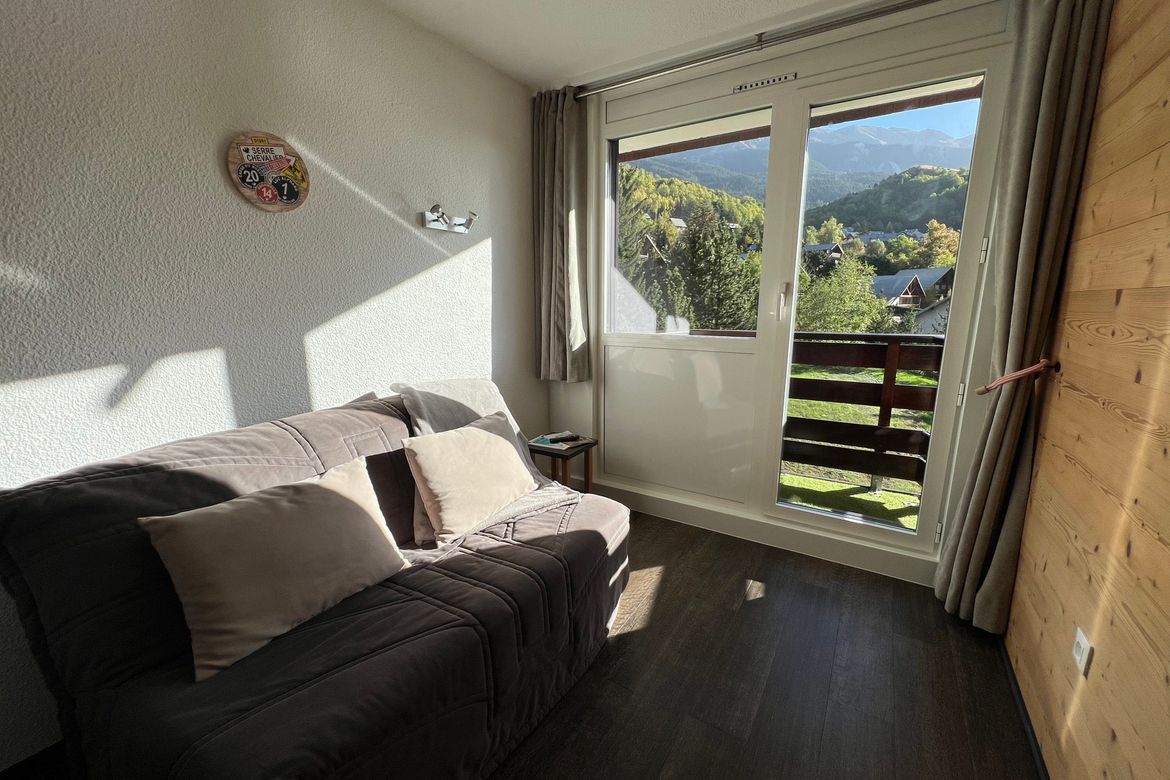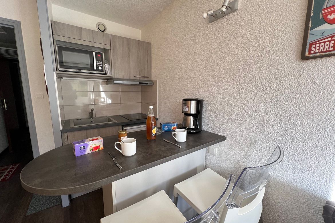 Located on the heights of Chantemerle, this lovely studio apartment on the 4th floor of the residence is perfect for a romantic stay in Chantemerle. With sofa, it was built for maximum comfort and space. It is equipped with a kitchen renovated and decorated with taste in a modern and warm style. 17m...