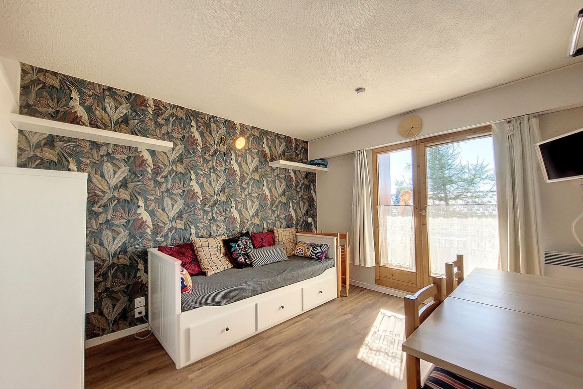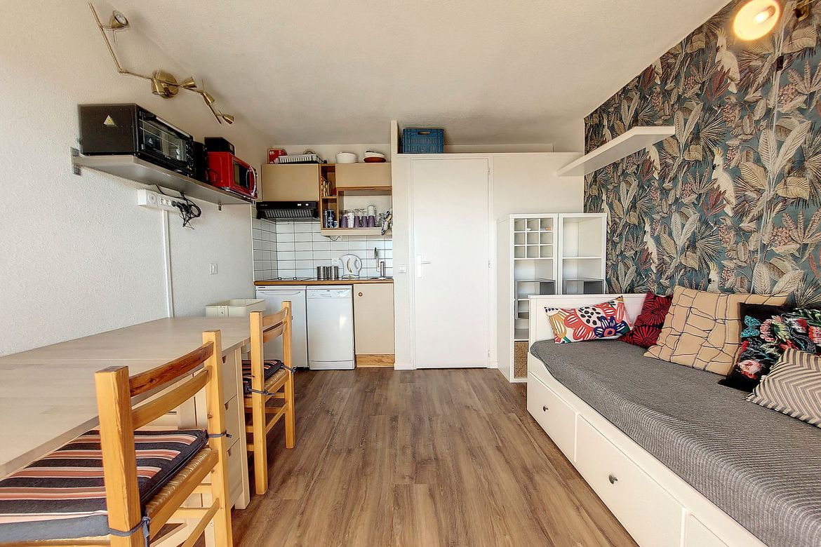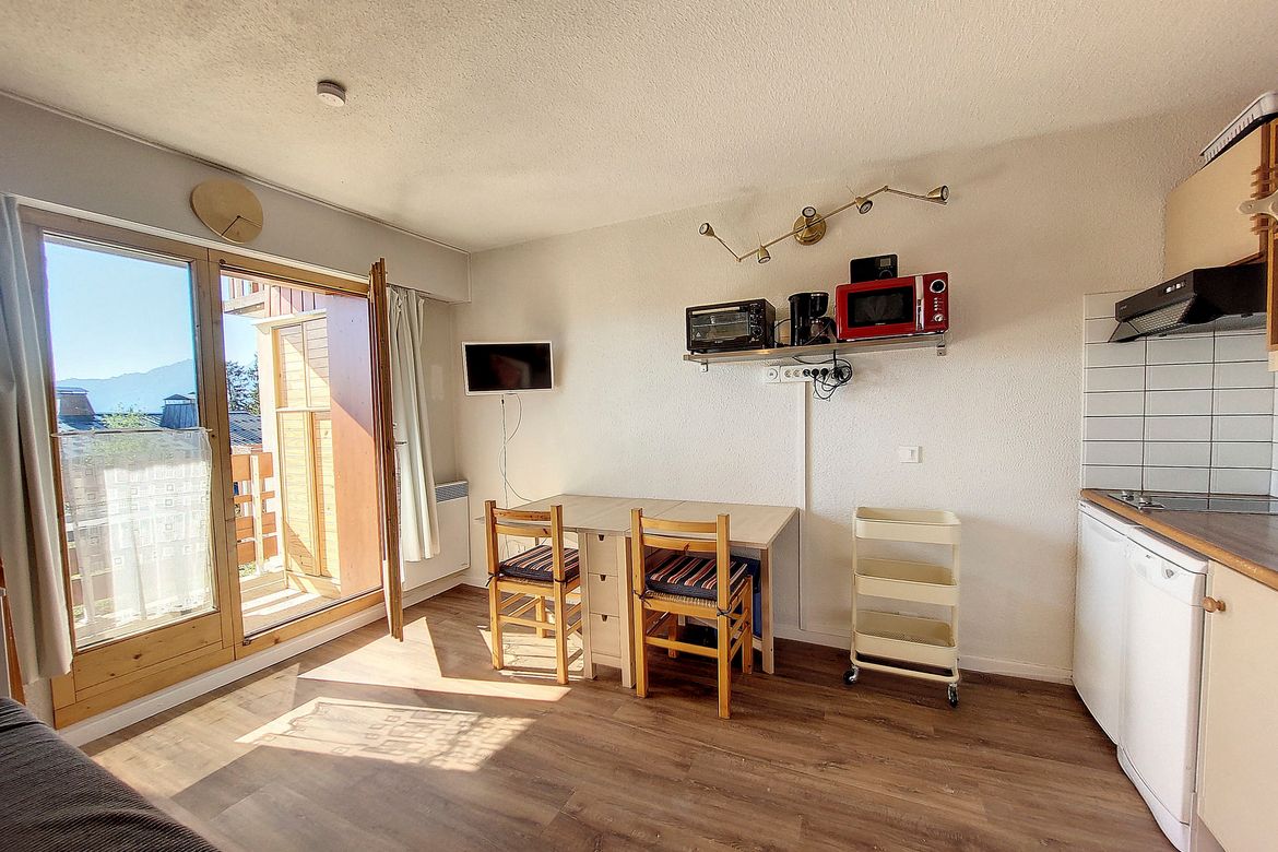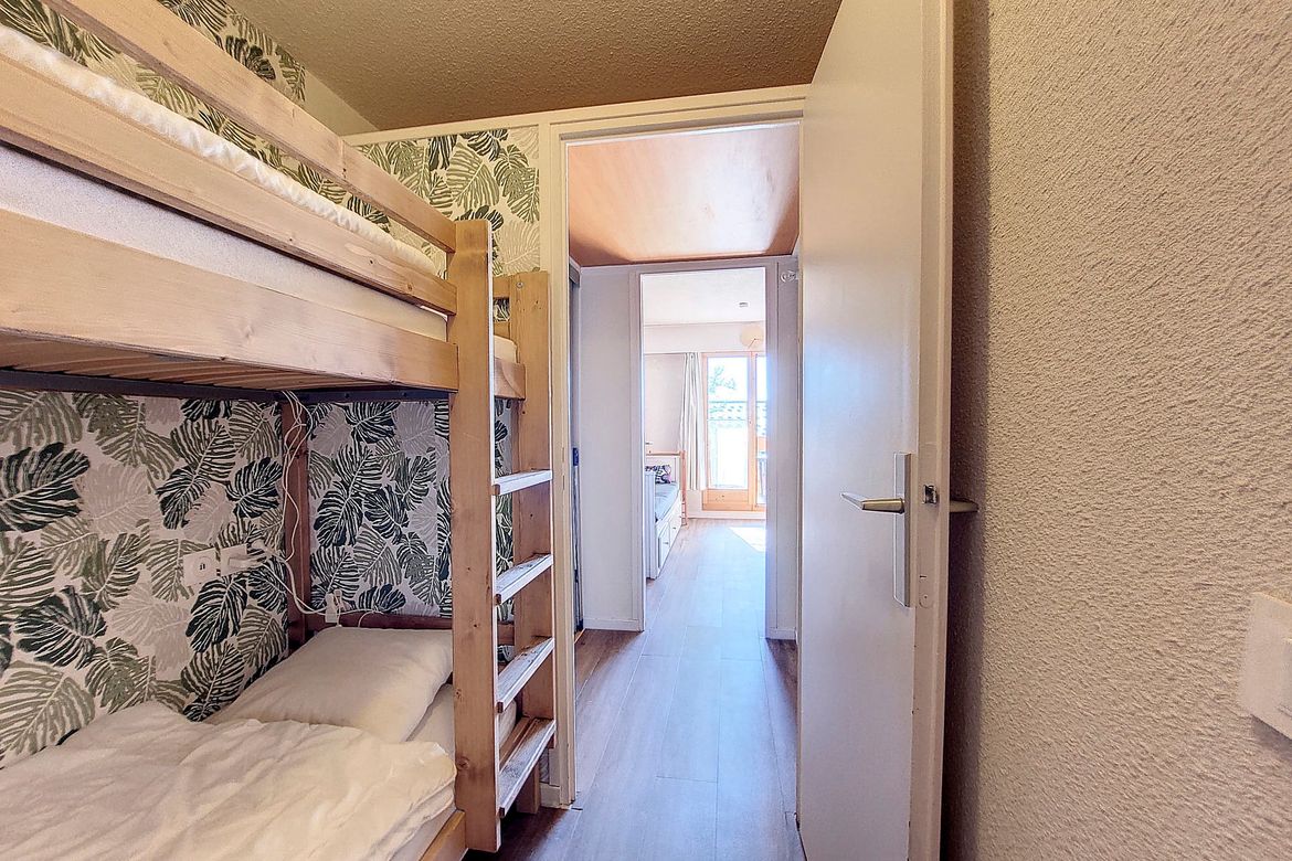 Studio de 22m² pour 4 personnes. Il est situé au rez-de-chaussé de la résidence et possède un balcon exposé sud avec vue sur la vallée. Le séjour comprend canapé gigogne 2x80cm, télévision et coin repas. Dans l'entrée : 2 lits simples superposés 80cm. La cuisine possède 2 plaques élèctriques, fou...