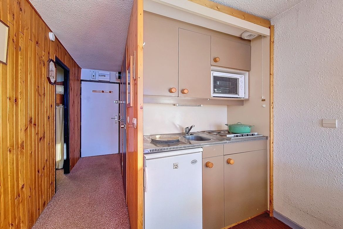 22 m² Studio located on the 5th floor of a residence, ideal for accommodating up to 4 people. It features a south-facing balcony with an open view. Included services: End-of-stay cleaning, Bed linen and towels provided. Label: 1 Bronze Flake Layout: Living room: equipped with a sofa bed for 2 peopl...