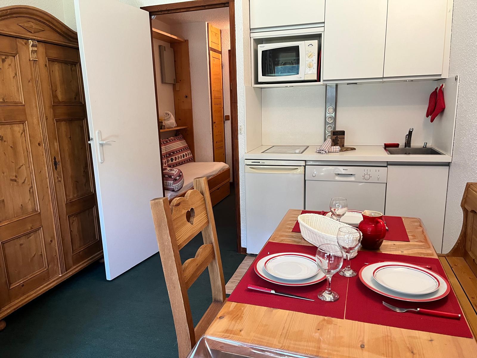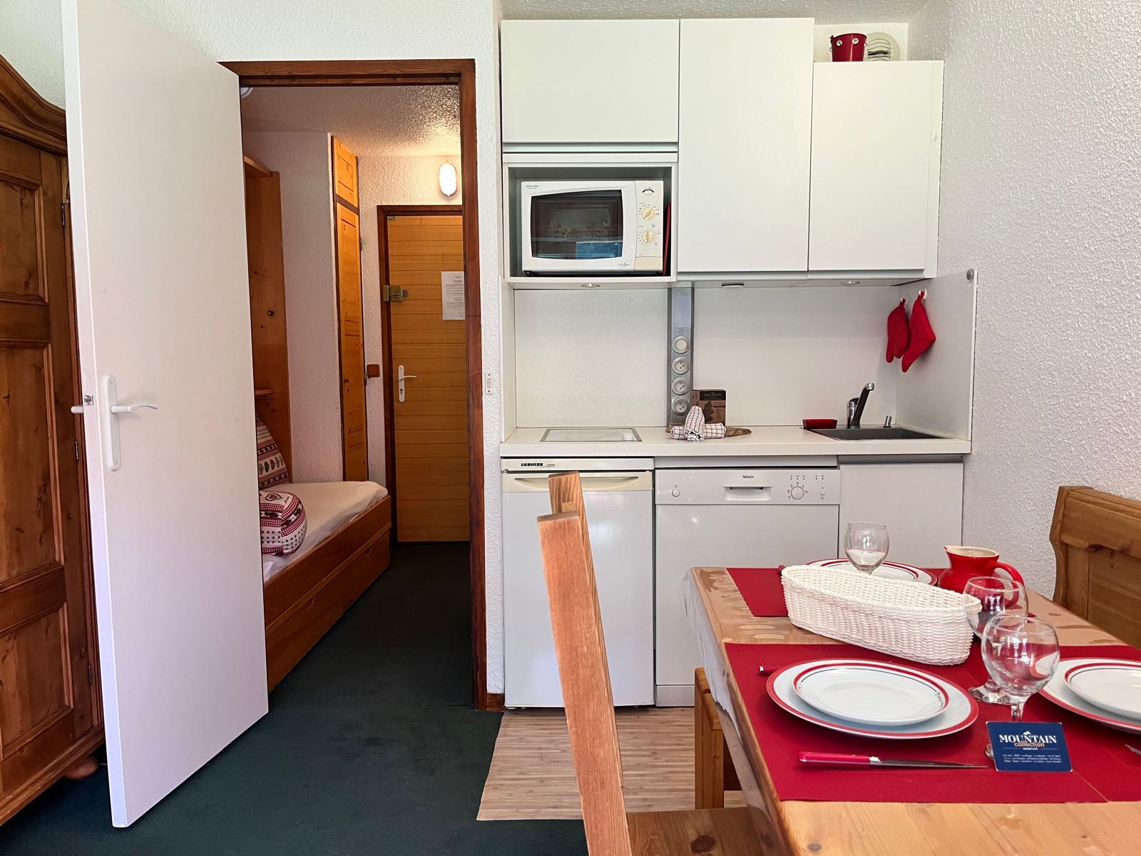 Bright 21 m² Studio – Résidence Lac Blanc – Méribel Mottaret This bright and functional 21 m² studio is ideally located at the foot of the slopes, with a west-facing exposure. Layout: Entrance hall with a mountain corner featuring a single bed (80x190 cm) Living room with a BZ-type sofa bed and a te...
