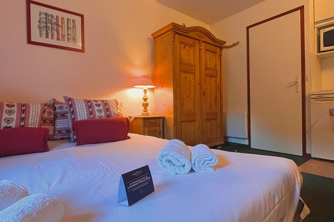 Come and discover the Lac Blanc D7 studio, a bright 21 m² space ideally located at the foot of the slopes and close to the Laitelet shopping area. Your comfort includes: Entrance hall with a mountain corner and a single bed (80 x 190 cm) Living area with BZ sofa bed (160x 190 cm) and TV Equipped kit...