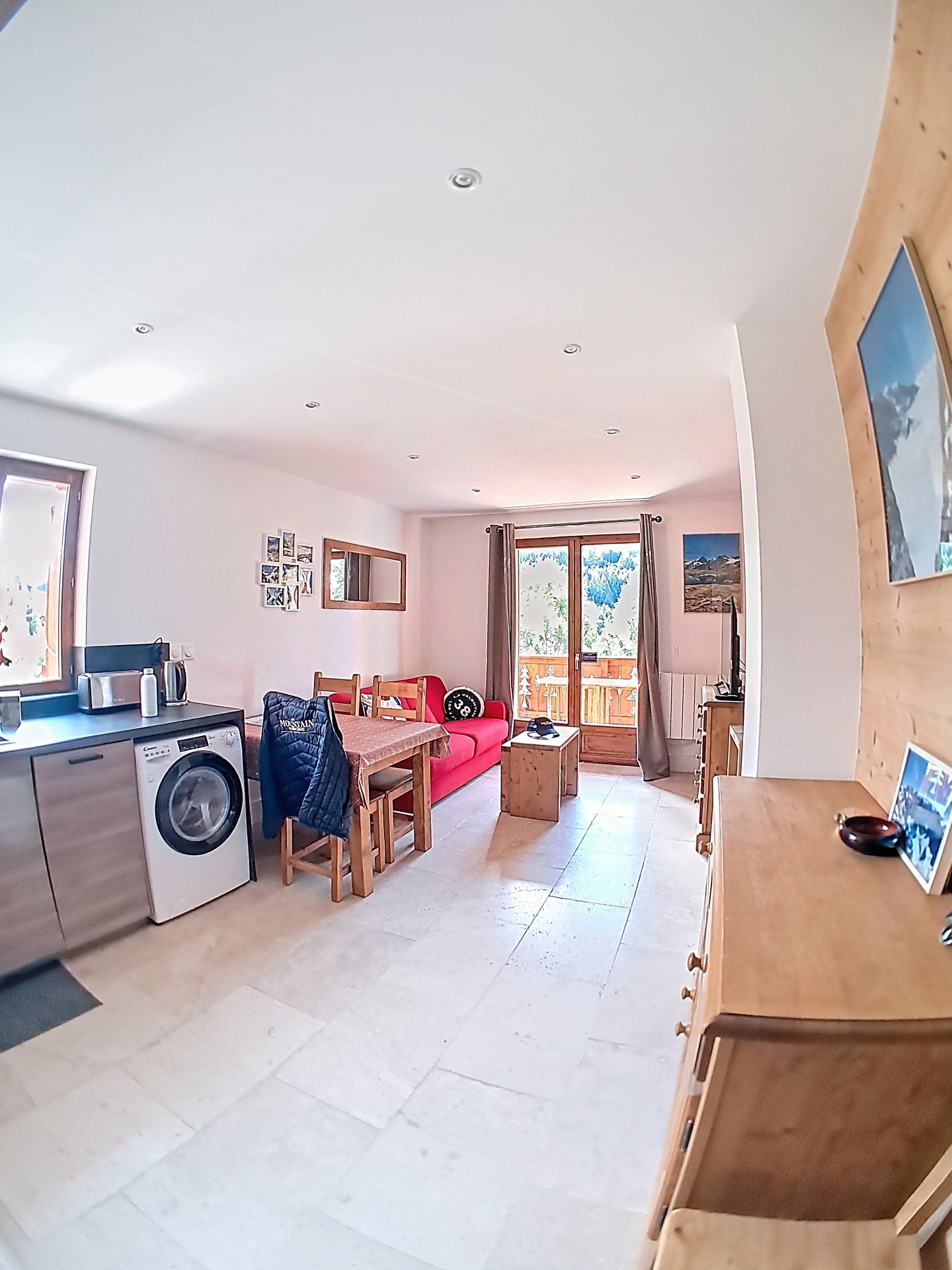 Located in a quiet area of the resort, close to shops, Lac de la Buissonnière, and the ski slopes. This apartment is situated on the lower ground floor (-1) of a small condominium with just 4 units. A bright and well-designed interior: Practical entrance with ski shoe storage Bedroom 1: with a doub...
