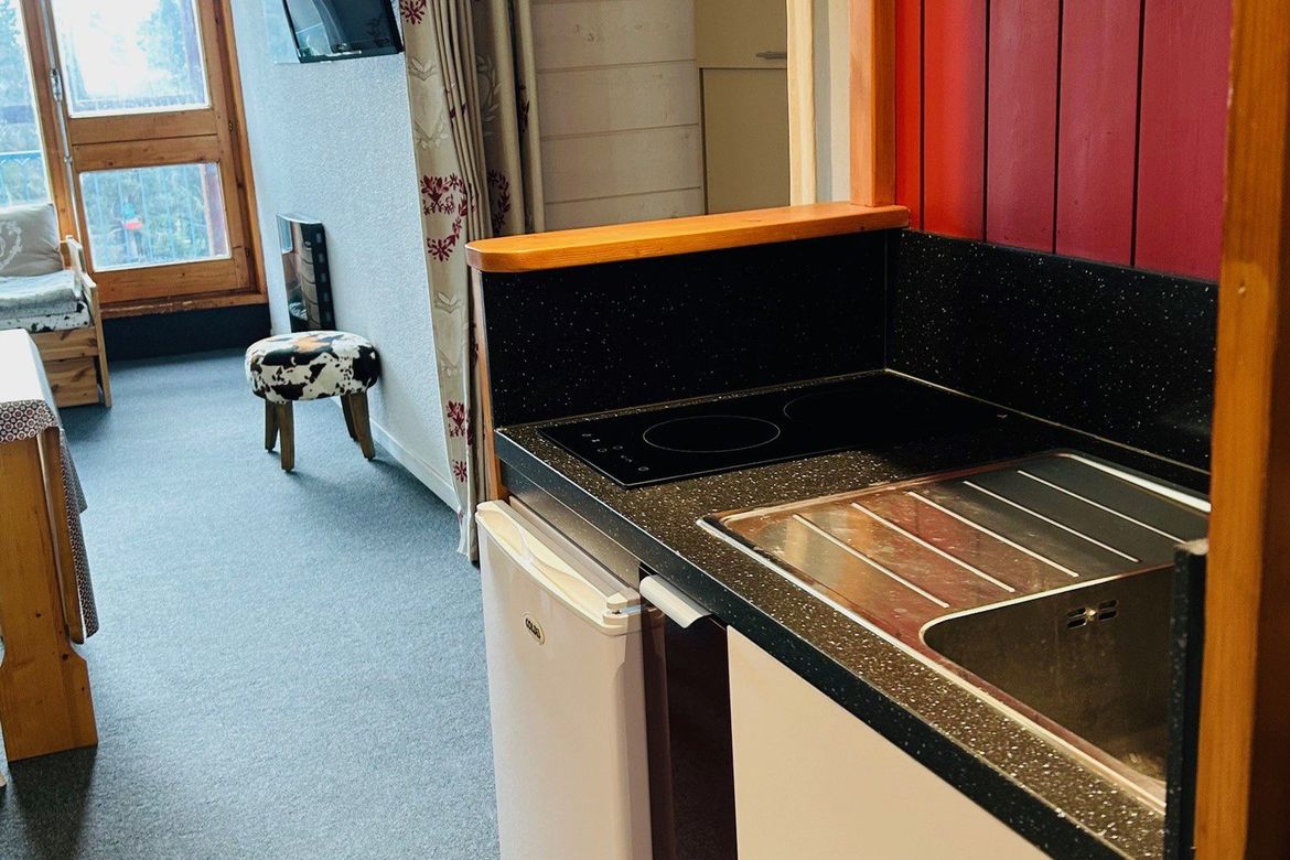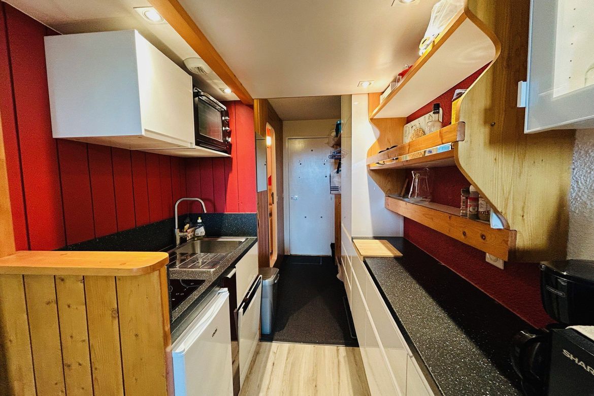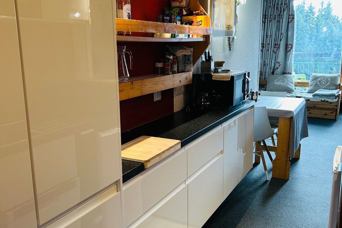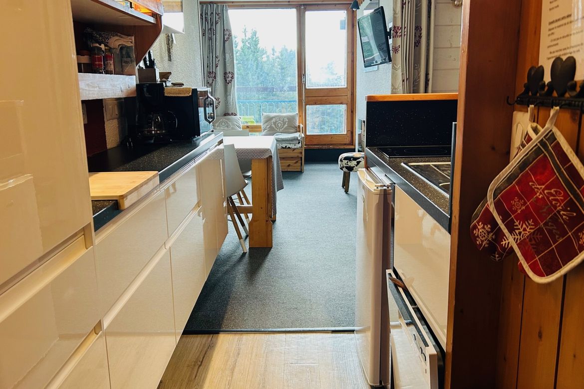 Studio cabine de 24m² pour 4 personnes, au 7ème étage de la résidence Belles Challes du Charvet, exposé Sud-Ouest, au pied des pistes et des commerces. Avec balcon Composé à l'entrée d'une salle de bain avec WC Séjour avec une alcôve et 1 canapé double mural permettant un couchage pour 2 personnes...