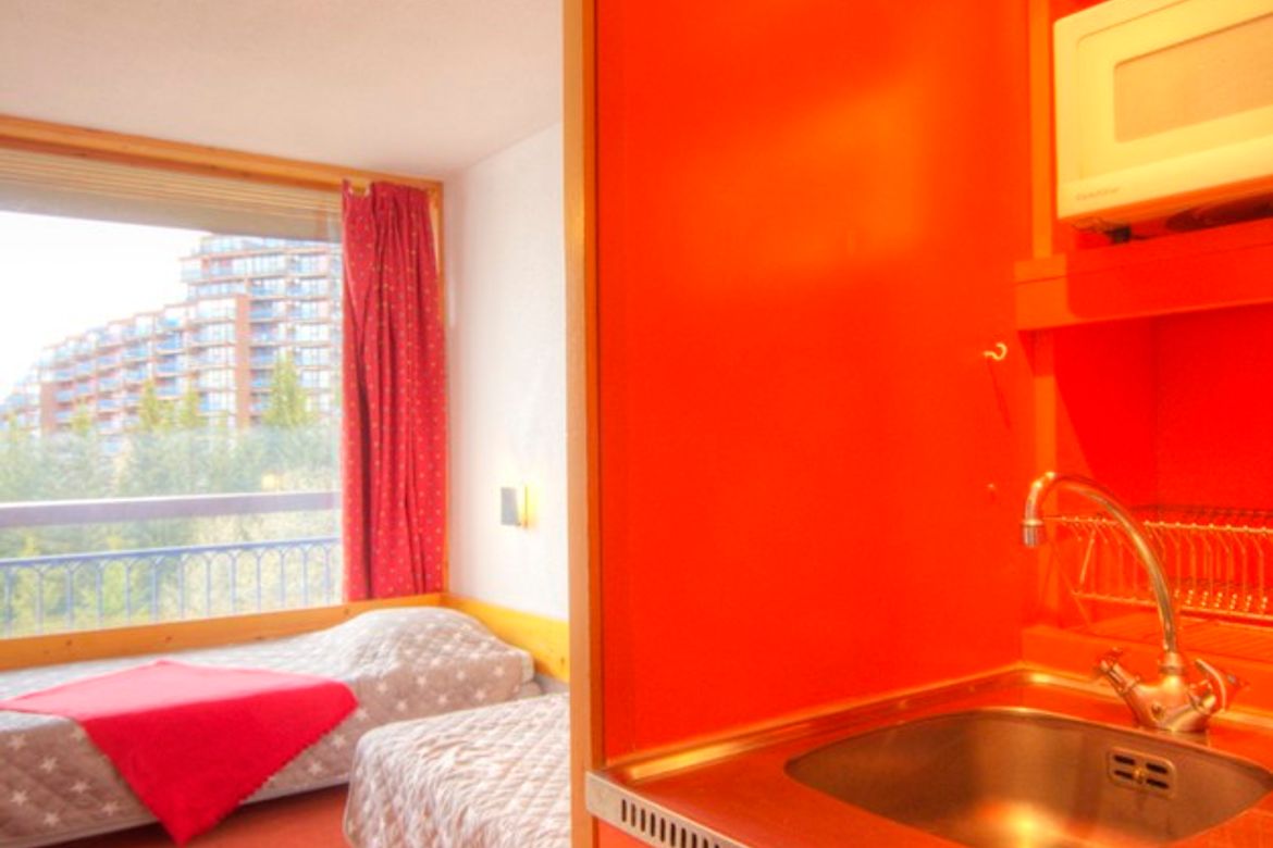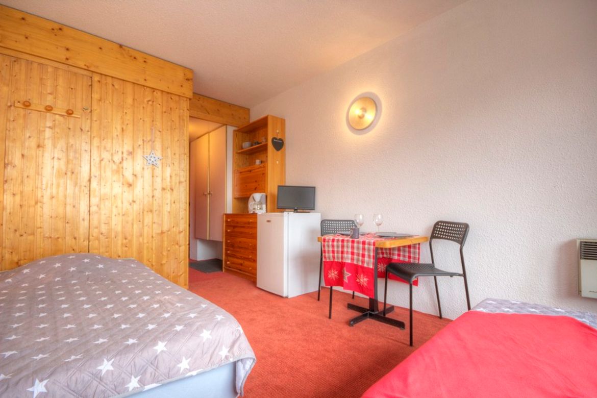 Joli studio meublé et équipé pour 2 personnes, d'une superficie de 17m², situé au centre de la station, au 10ème étage de la résidence Grand Arbois, village des Villards. Il se compose de deux lits banquettes dans le séjour. Télévision à écran plat. La kitchenette est équipée de plaques électrique...