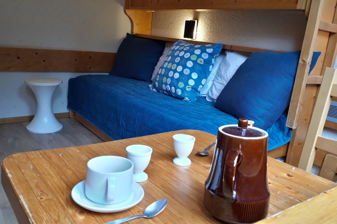 Small studio 13m², for 2 people, located on the 13th floor of Residence Nova 1, near the shops and services. Exposure North. No balcony Lounge : 1 day bed + 1 pull bed Flat screen TV Kitchen : electric hobs, oven, fridge, coffee maker, kettle and toaster Small showerroom . Separate toilet. Extr...