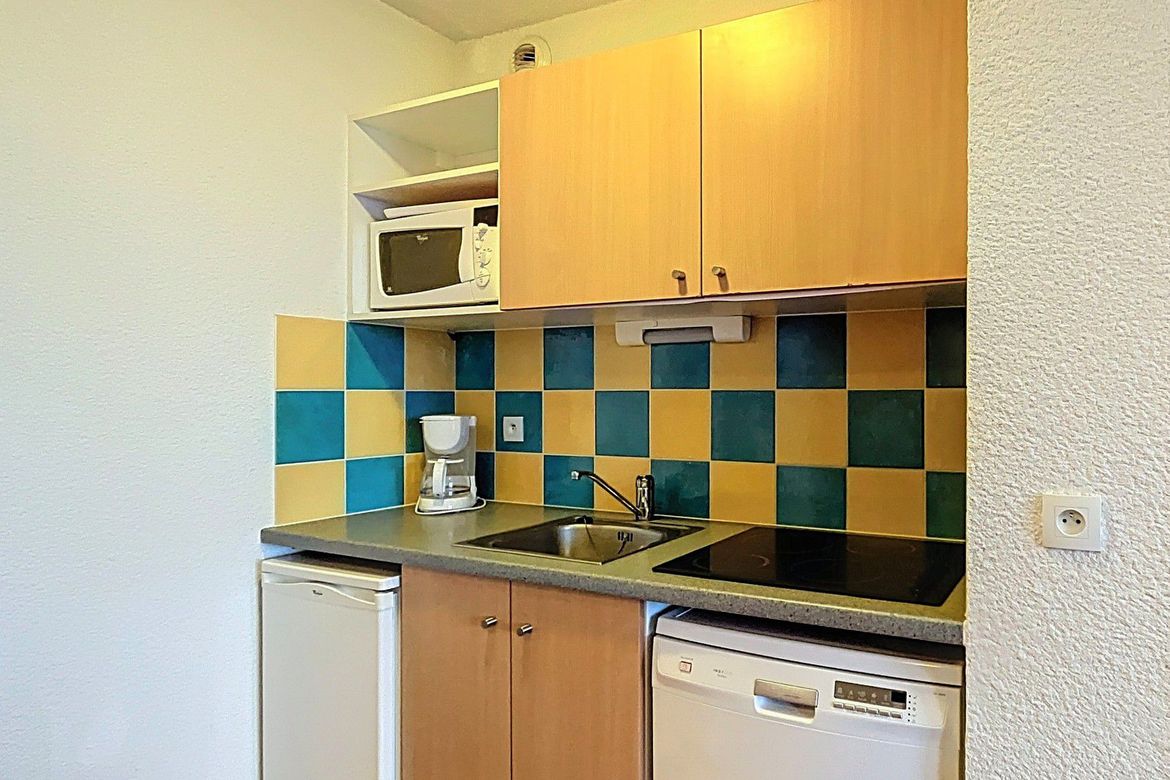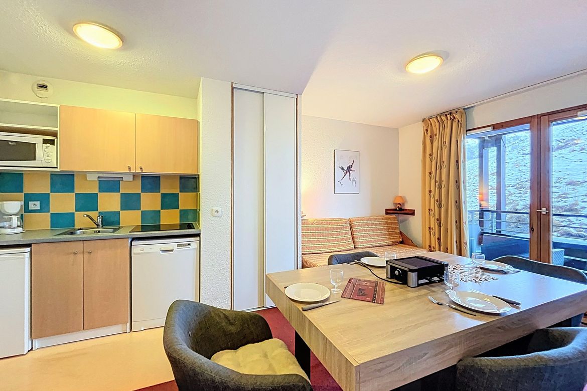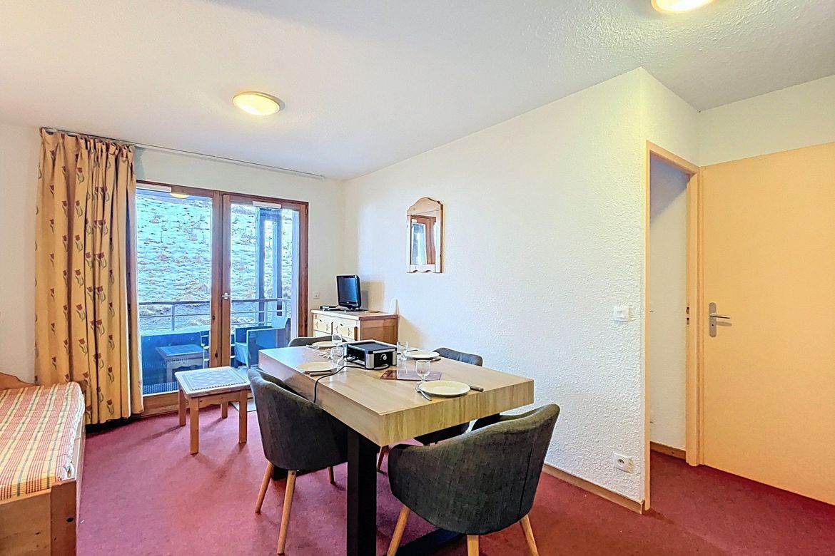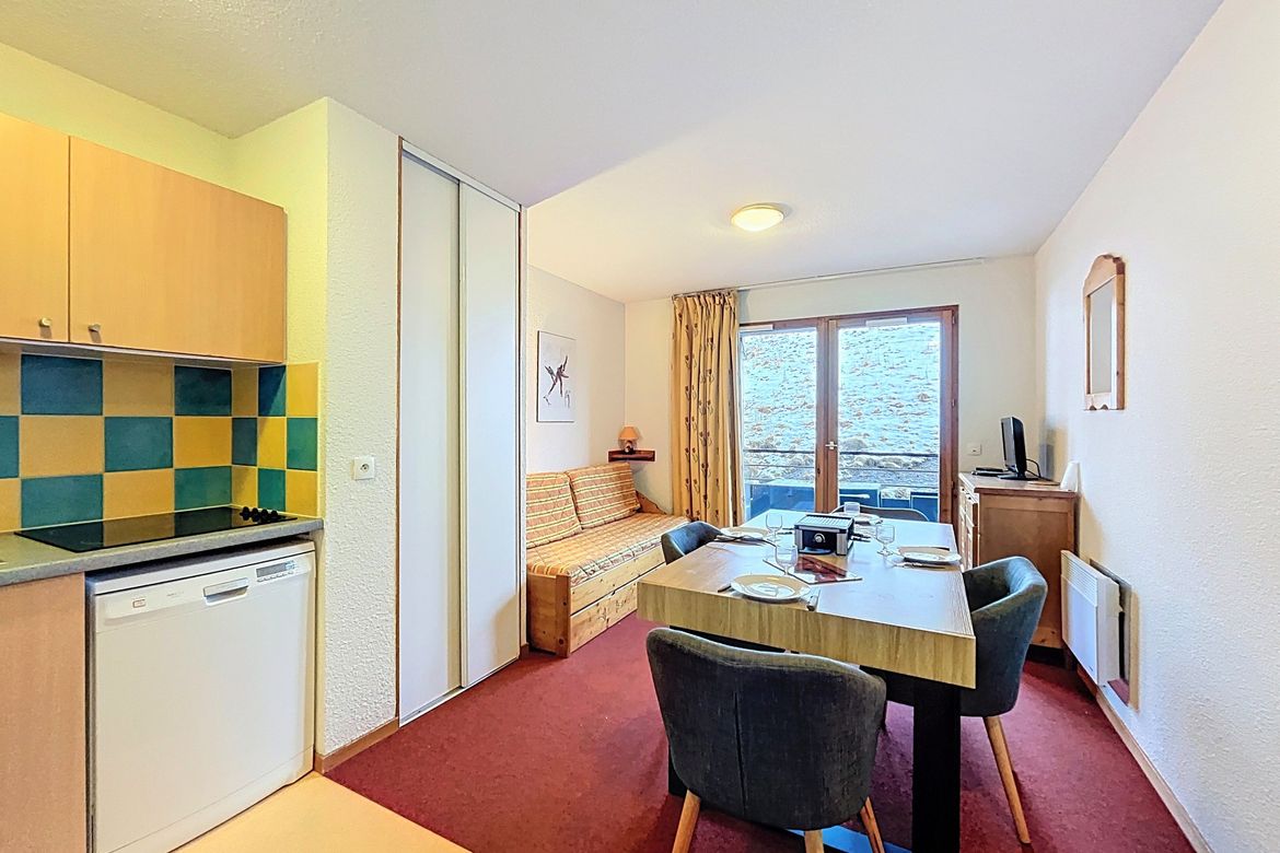 31 m² 1-bedroom apartment, accommodating up to 4 people, located in the “Les Pistes” residence on the 2nd floor. South-facing balcony. The apartment features a living room with a pull-out sofa bed for 2 people and a television. A kitchenette equipped with ceramic hobs, microwave, electric coffee ma...