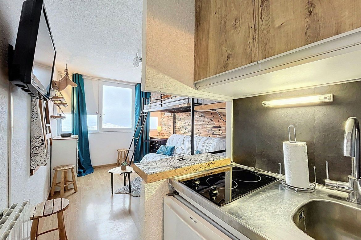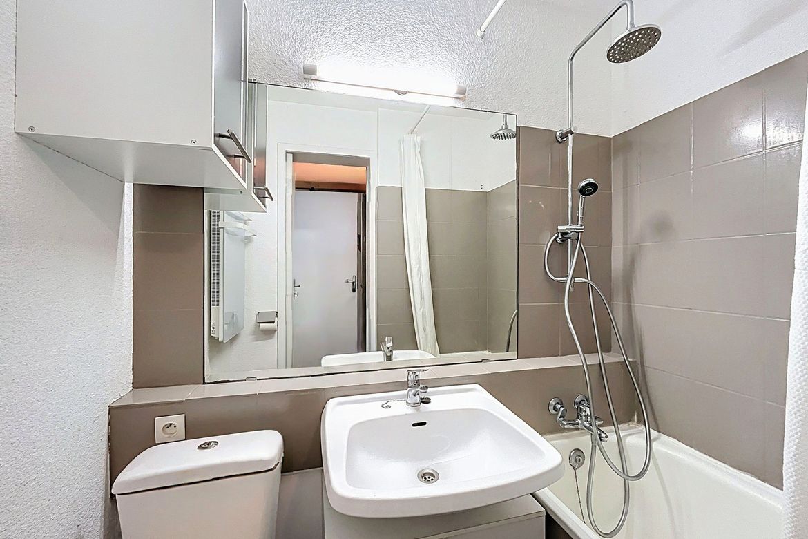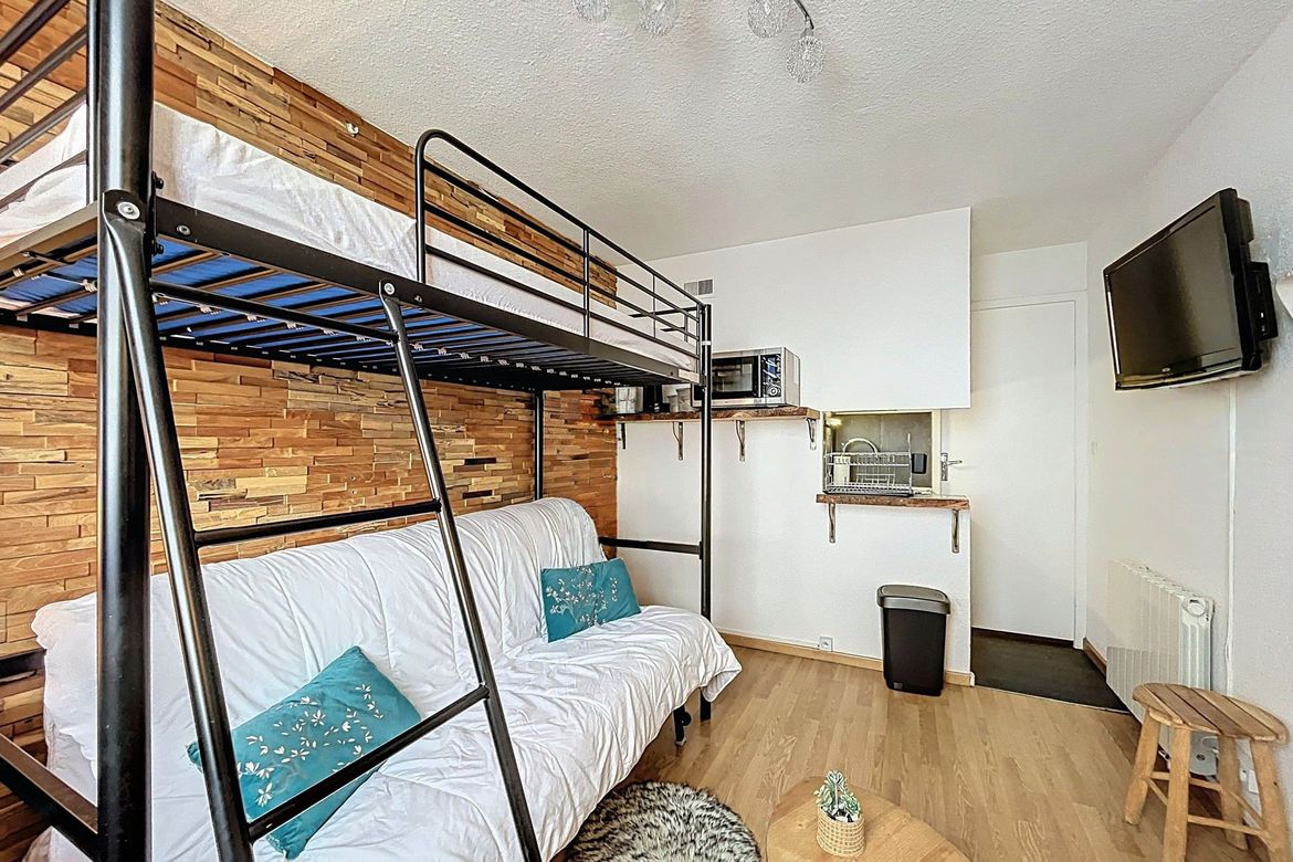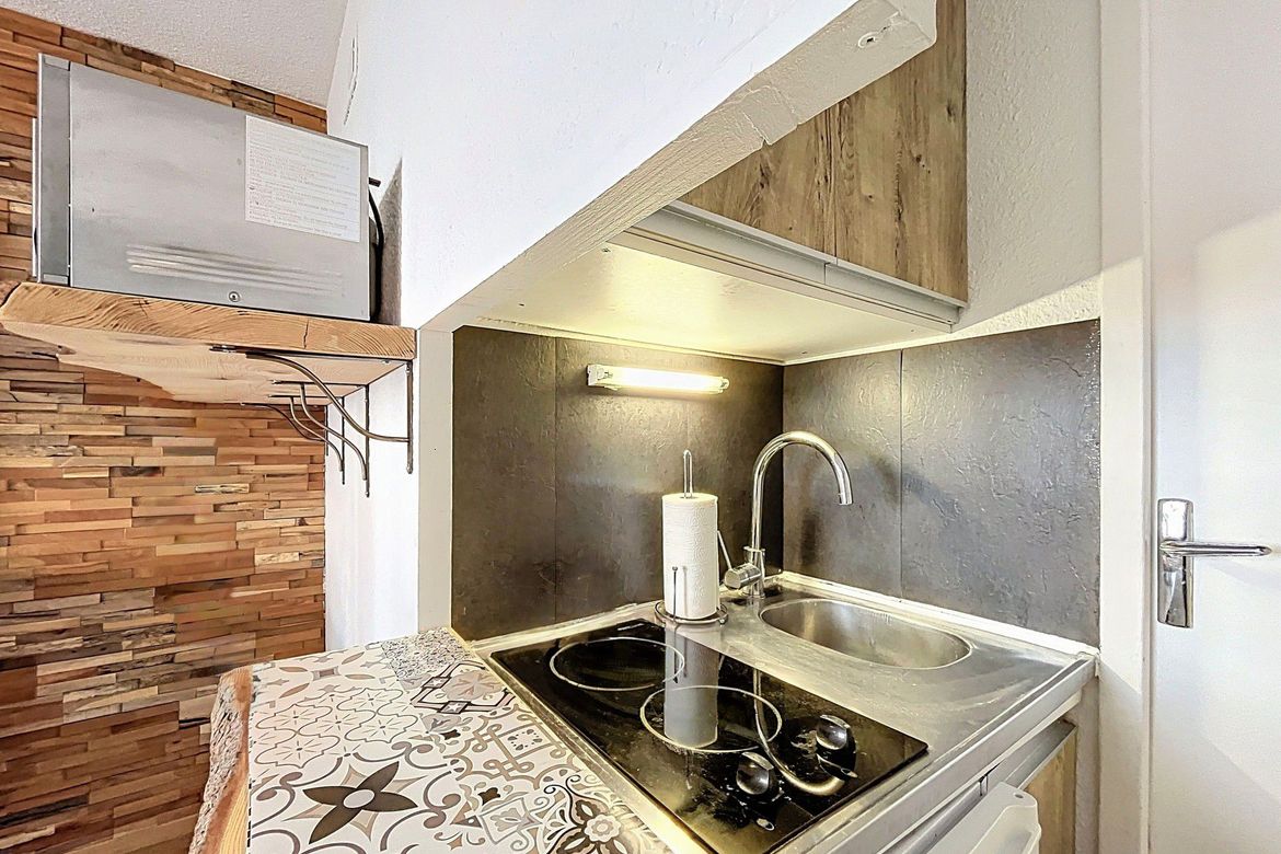 16 m² studio for 2 to 3 people, tastefully renovated. Located on the 7th floor of the Zodiaque residence, north-facing. This studio features an entrance with a storage closet, a bathroom equipped with a bathtub, a washbasin, an electric towel dryer, and a toilet. A kitchenette with a 2-burner ceram...