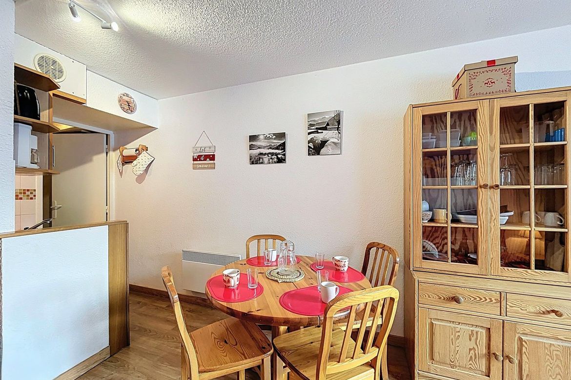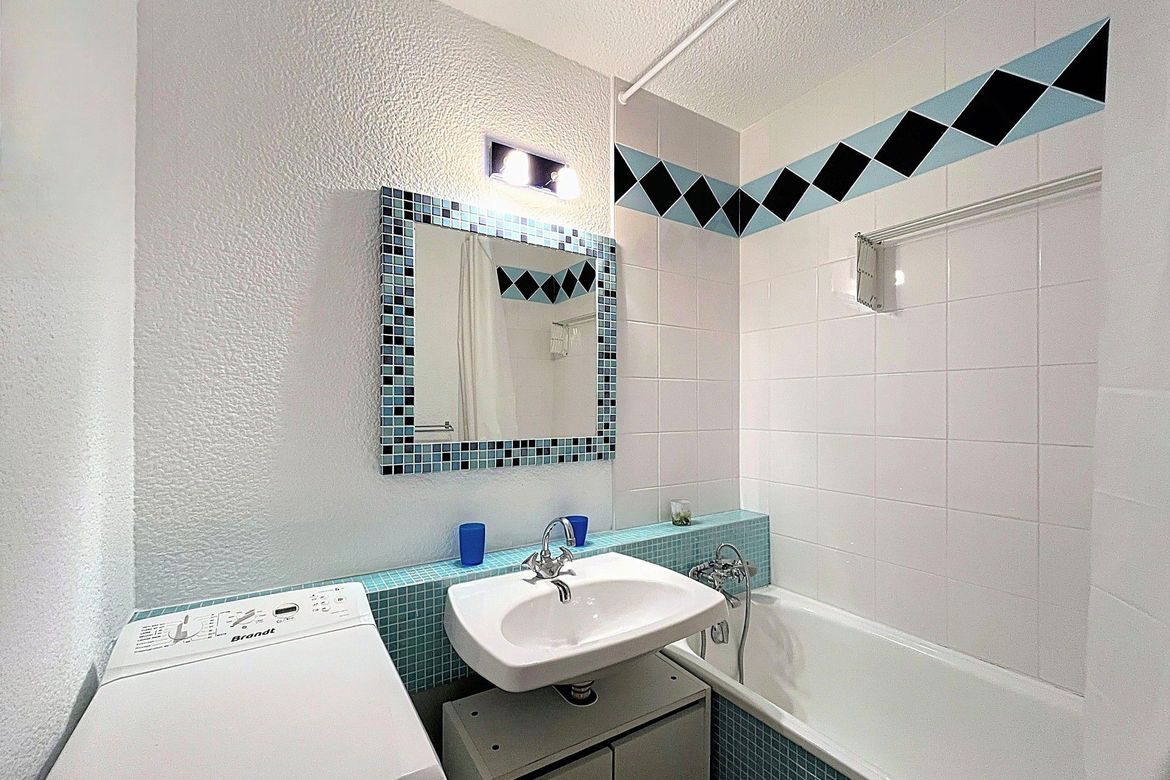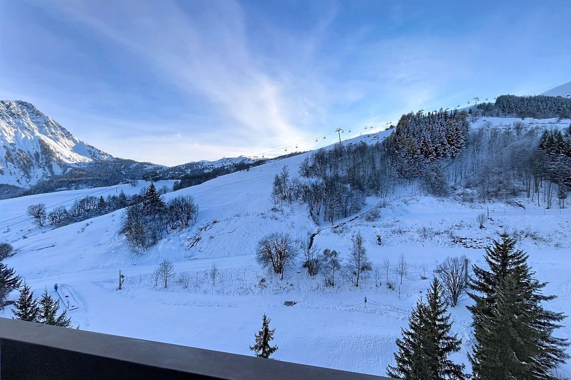 22 m² studio for 4 people, located in the Soyouz Residence, on the 9th floor, with a south-facing balcony offering a view of the ski slopes. The accommodation includes an entrance hall with storage closet, a large refrigerator with freezer, and a microwave. The bathroom is equipped with a vanity un...