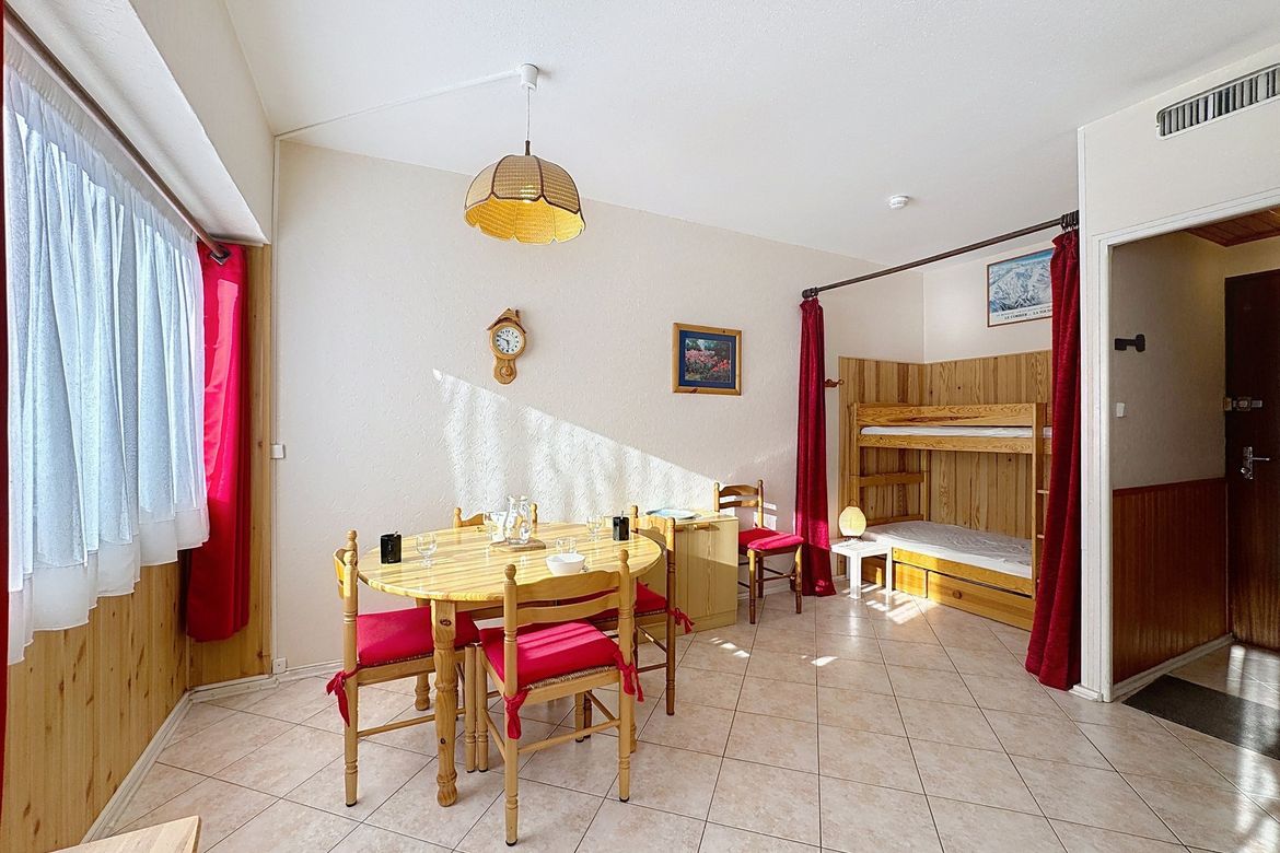 Studio de 24m², pour 4 personnes, situé au pied de la Résidence les Aiguilles, au rez de chaussée (sans balcon). Logement exposé sud. Commerces à proximité, navette gratuite à 20m pour rejoindre les pistes. Studio agréable, lumineux, comprenant une entrée avec placard de rangement, une salle de ba...