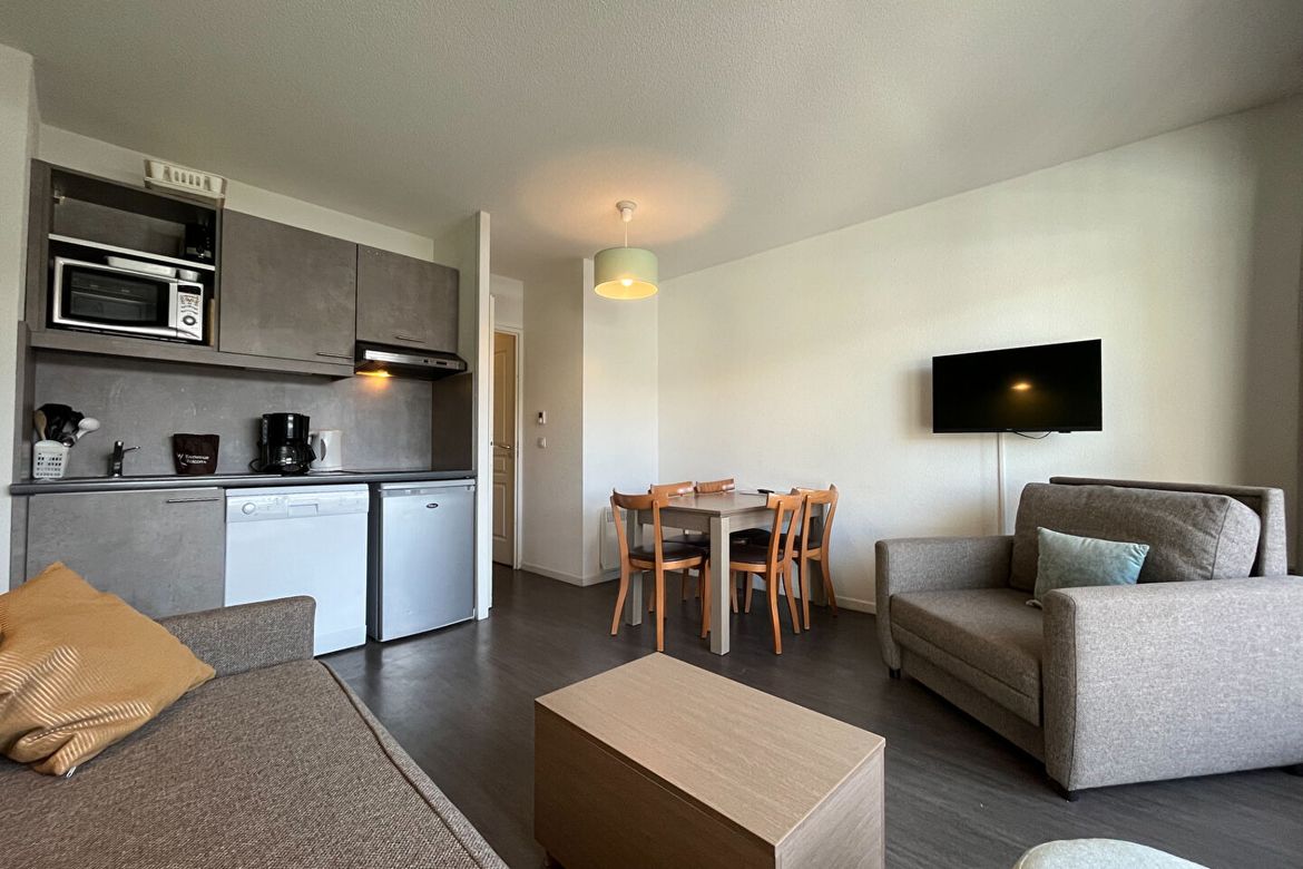 Located right next to the slopes, this 2-room apartment features: an entrance hall, a bedroom with a built-in wardrobe, a bathroom, a separate toilet, and a bright living room with a large bay window and a south-facing terrace. The apartment includes a ski storage room and a covered parking space. A...