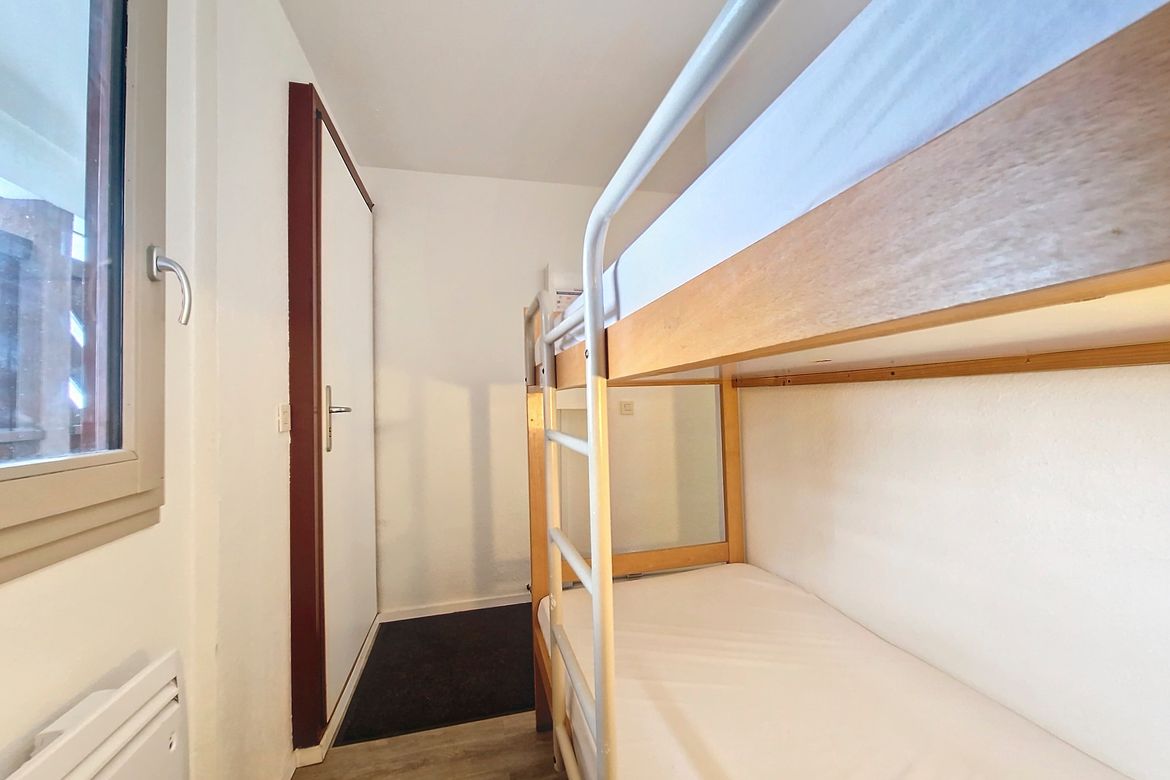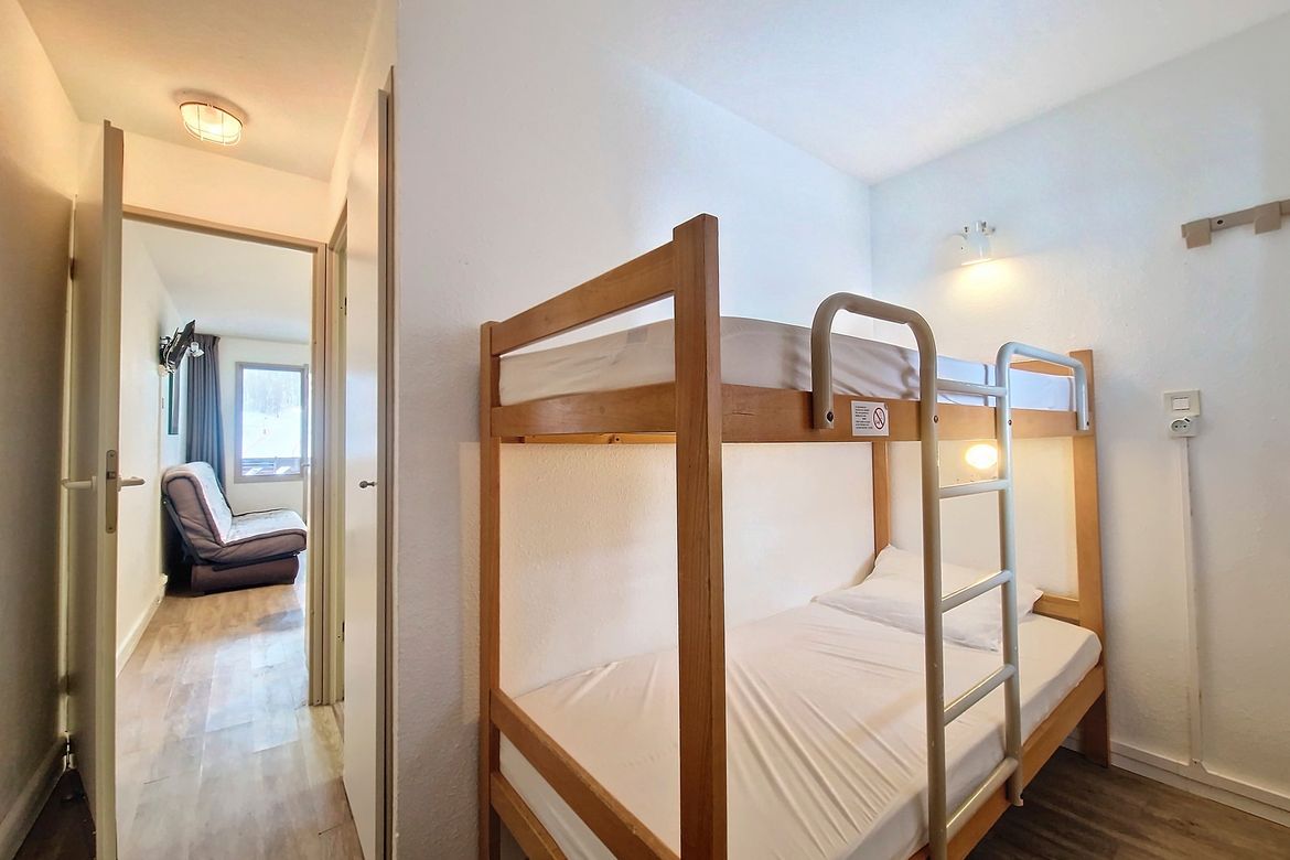 4th floor studio in La Daille of 22m² for 2/4 people with south facing balcony. Residence with lift. Entrance Maeva, building C. (entréé à coté de Ski Set) No smoking apartment. Living area with a sofa bed. Television* Entrance hall with 1 set of bunk beds. Kitchen equipped with electric plates, m...