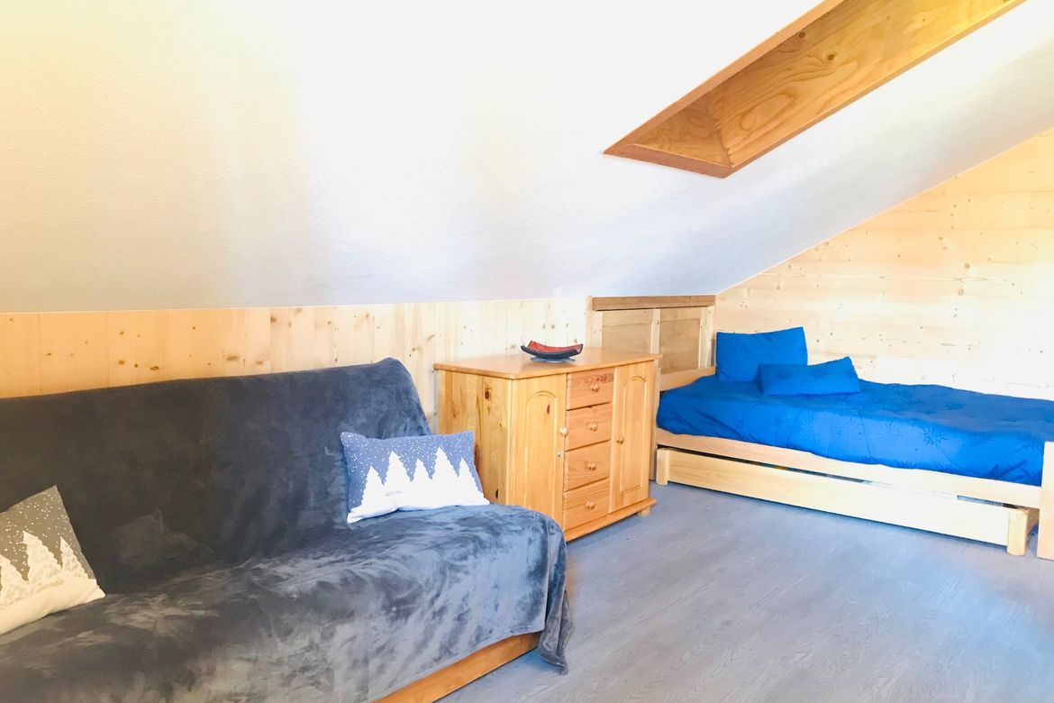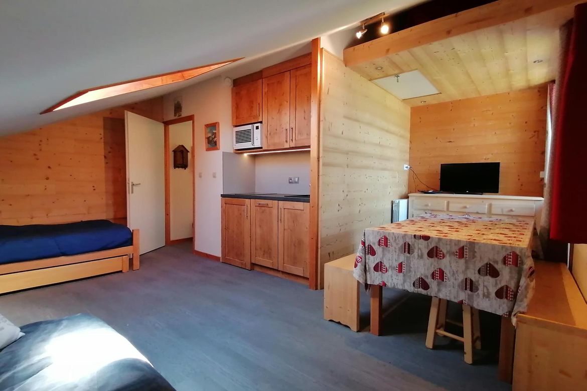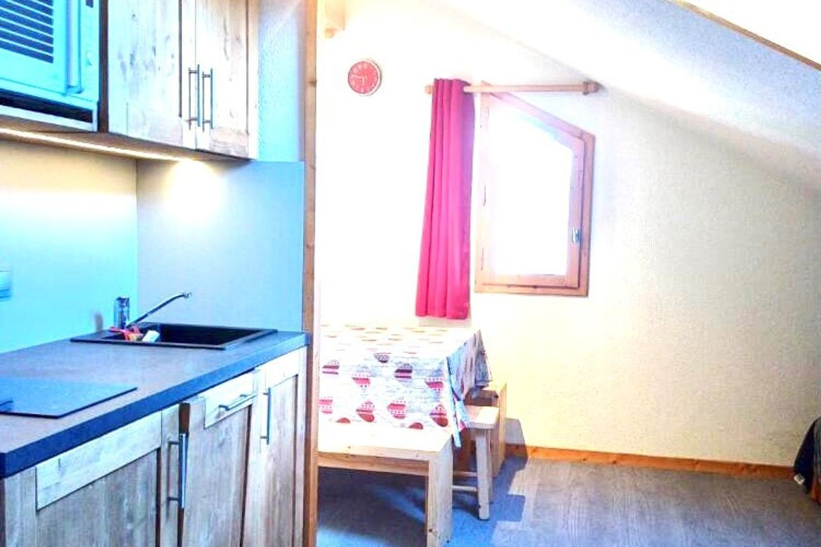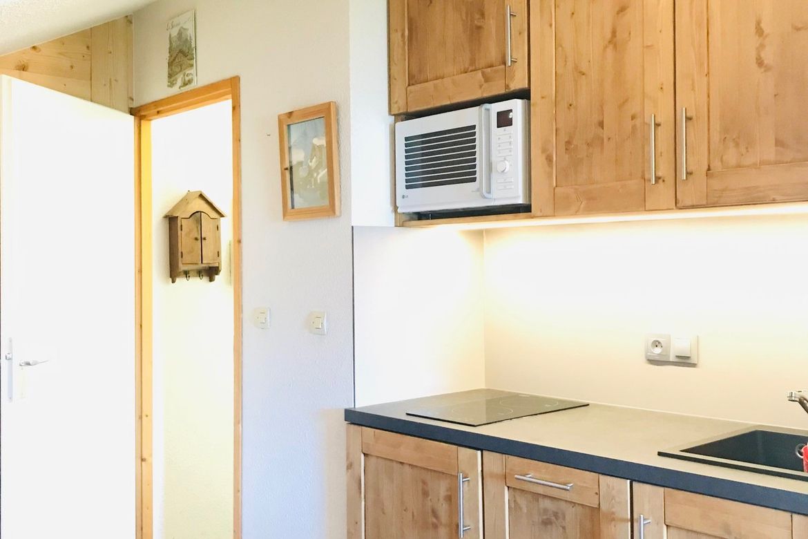Résidence "Le Chanteloup", sur les pistes, au calme, studio agréable de 20m2, pour 3 personnes, au 1er étage sans ascenseur avec balcon vue sur la vallée et possédant un casier à skis individuel au RDC. Studio composé d'un coin cuisine rénové et équipé de 2 plaques vitro céramiques, d'un four micro...