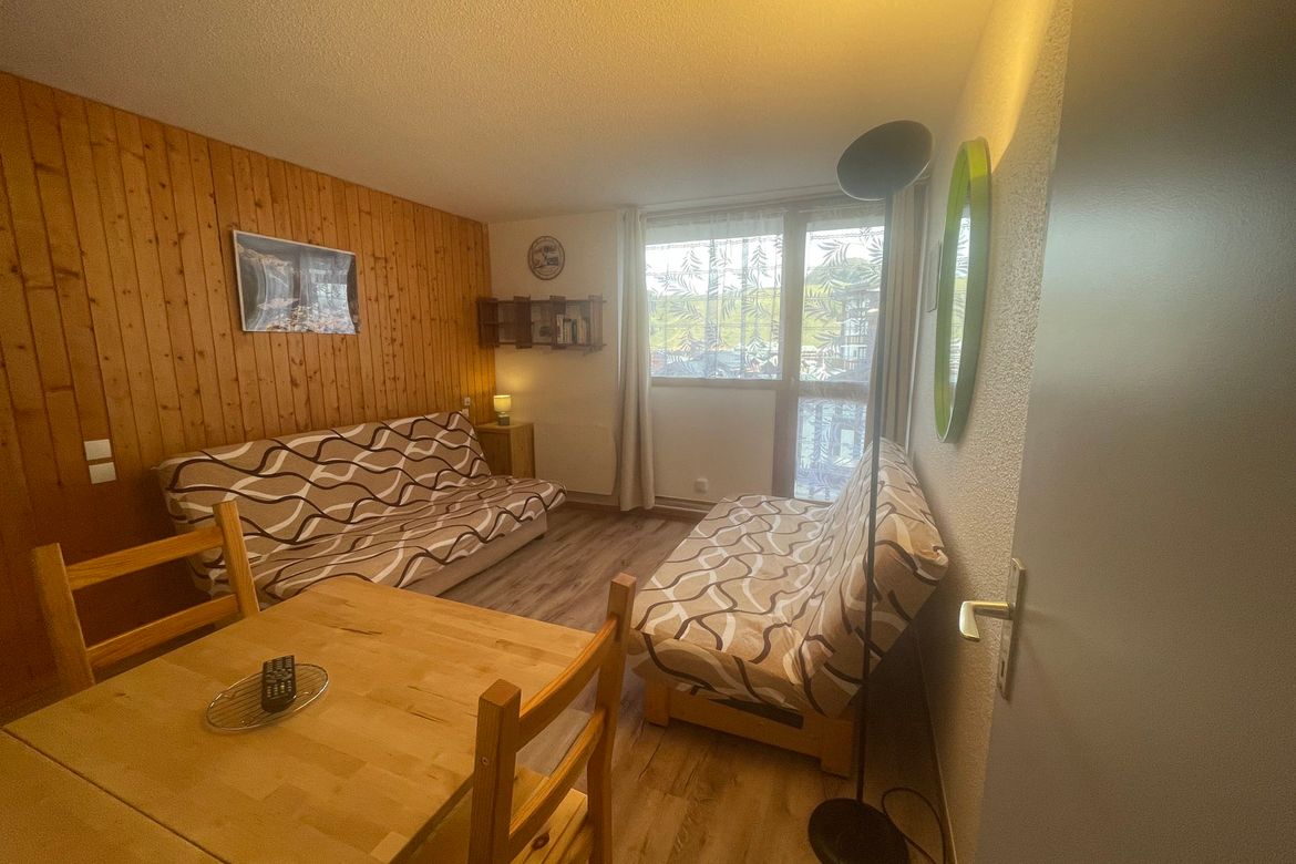 Situé dans la résidence Les Hameaux II à Plagne Villages au pied des pistes. Studio confortable de 19m² pour 2 personnes, au 2ième étage avec ascenseur et balcon vue montagne. Situé au pied des pistes et à proximité des commerces, exposition Est. Couchage : 2 banquettes lits clic clac en 140 T...