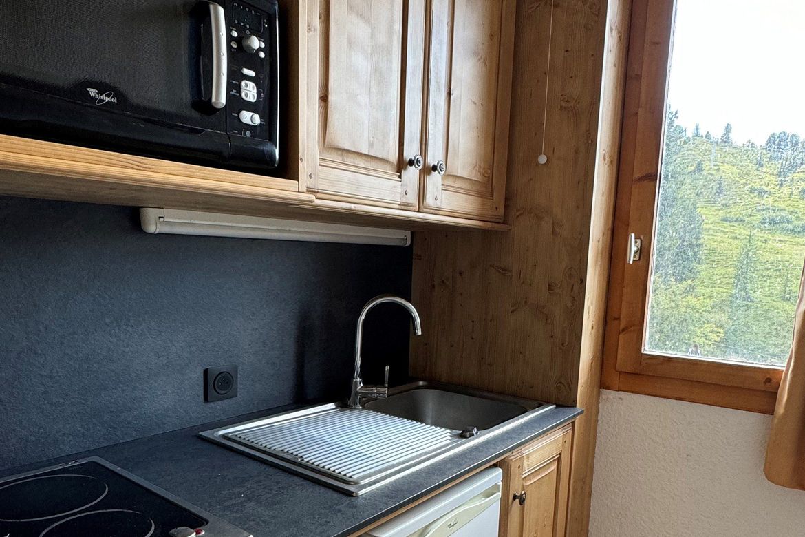 Studio au pied des pistes pour 3/ 4 personnes de 22 m² Il est situé au sud ouest et au 2ème étage avec un balcon et vue sur les pistes. Cuisine : indépendante avec un lave-vaisselle , un four mixte et 1 plaque vitrocéramique 2 feux Séjour divisible : 1 clic clac pour 2 personnes en 140 et un cli...