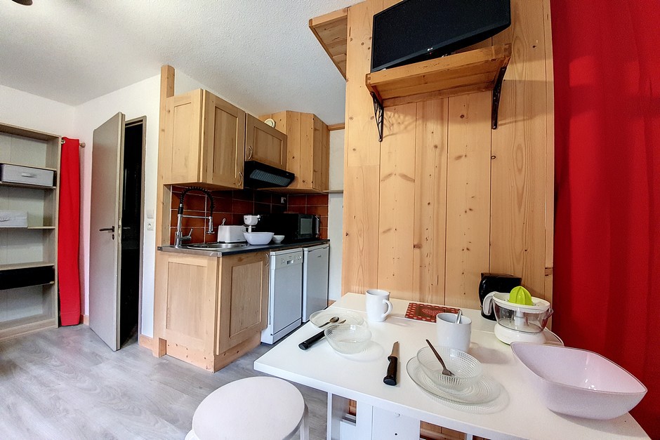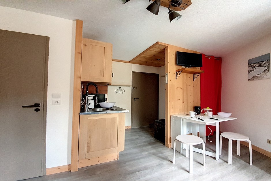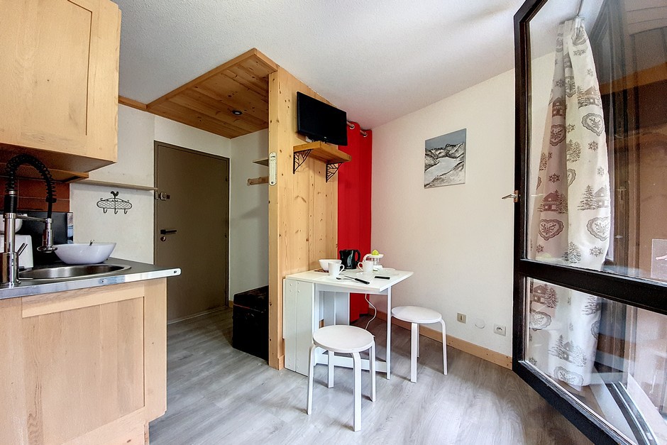 Joli studio rénové de 17 m² pour 2 personnes. Il est situé au 3ème étage avec un balcon exposé Nord-Est. labelisation station en cours Séjour : 1 canapé type BZ 2 personnes. Equipé d'une télévision. Cuisine équipée de 2 plaques induction, lave-vaisselle, réfrigérateur, cafetière, grille-pain et...