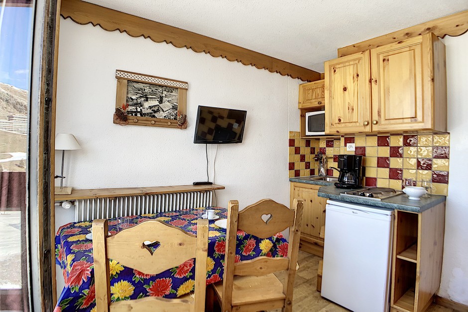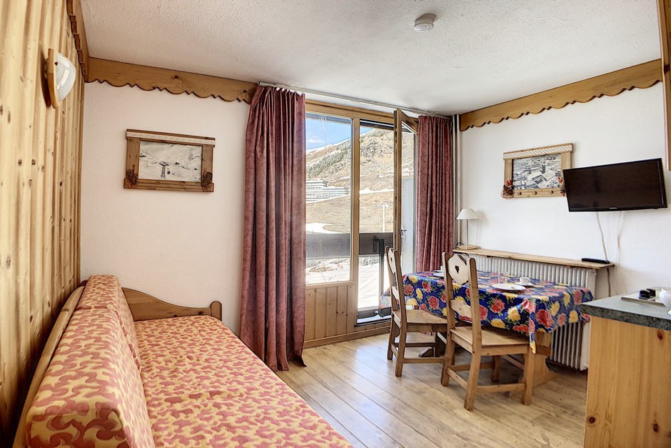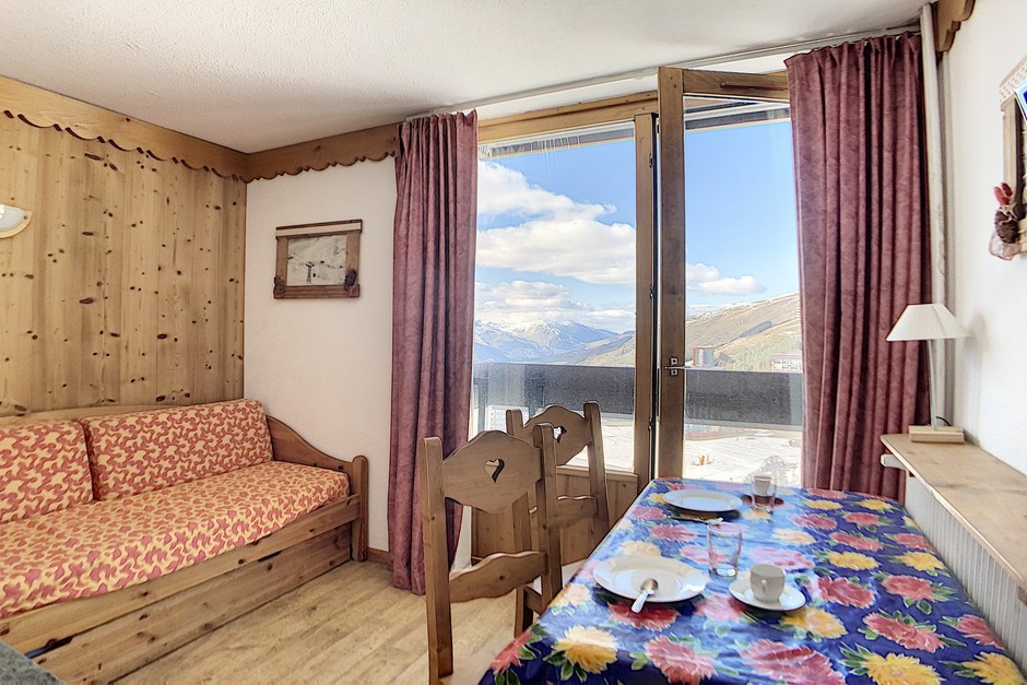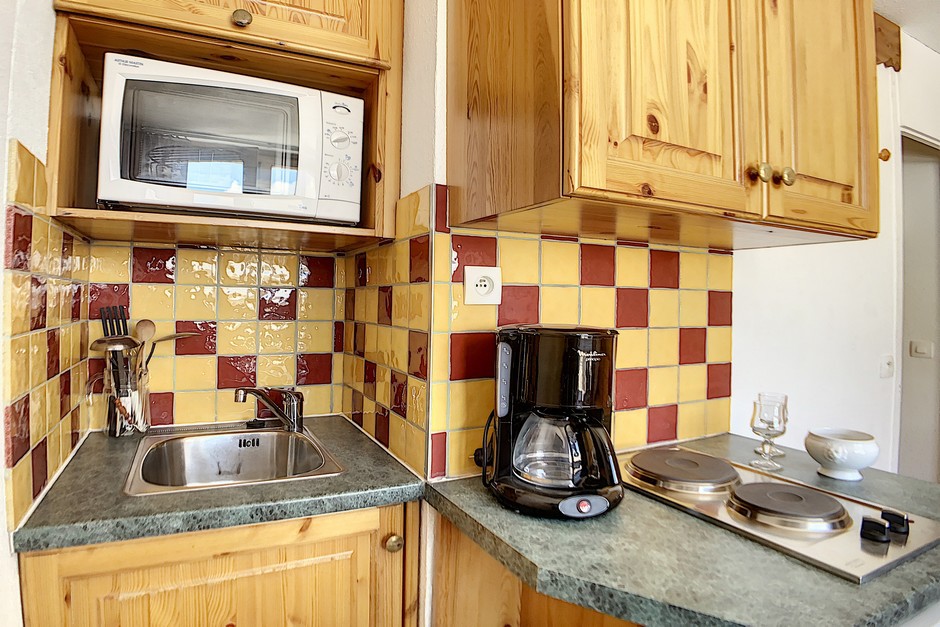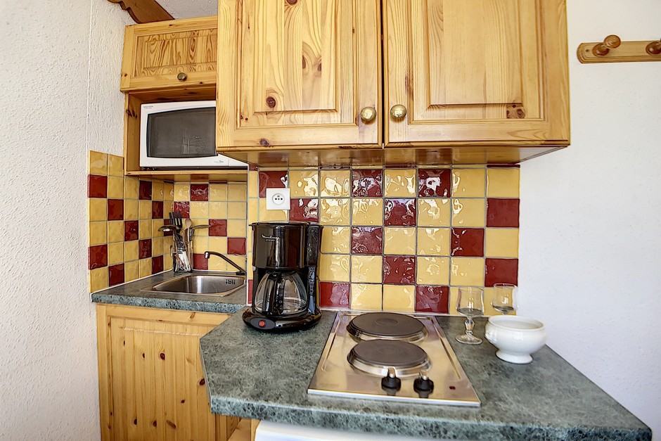 Studio de 13 m² pour 2 personnes. Il est situé au 12ème étage et est orienté Nord. Label : 2 flocons argent. Séjour : 1 lit simple et 1 lit gigogne (2x80cm). Equipé d'une télévision. Salle de bains avec douche et toilettes. Cuisine équipée : réfrigérateur, 2 plaques électriques, four micro-onde...