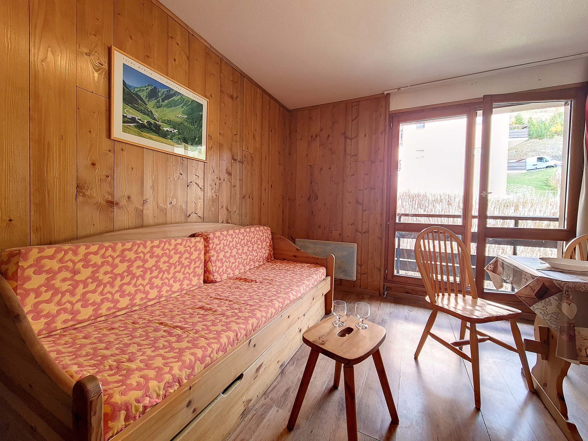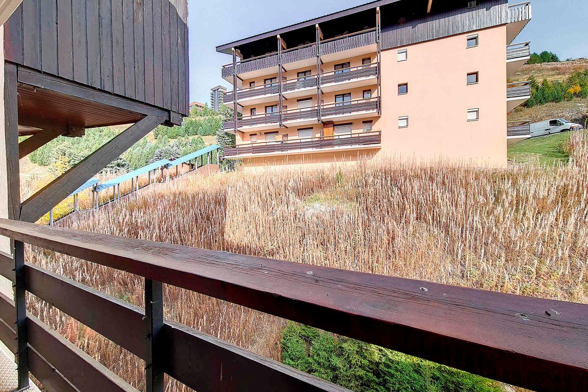 Studio avec balcon 2 personnes. Situé au 4ème étage, le studio, d'une surface de 17 m², est orienté Est. Label : 2 flocons argent Séjour : 2 lits simples gigognes (2*80m) Cuisine : réfrigérateur, 2 plaques électriques, four traditionnel, cafetière. Salle de bains avec baignoire et toilette App...