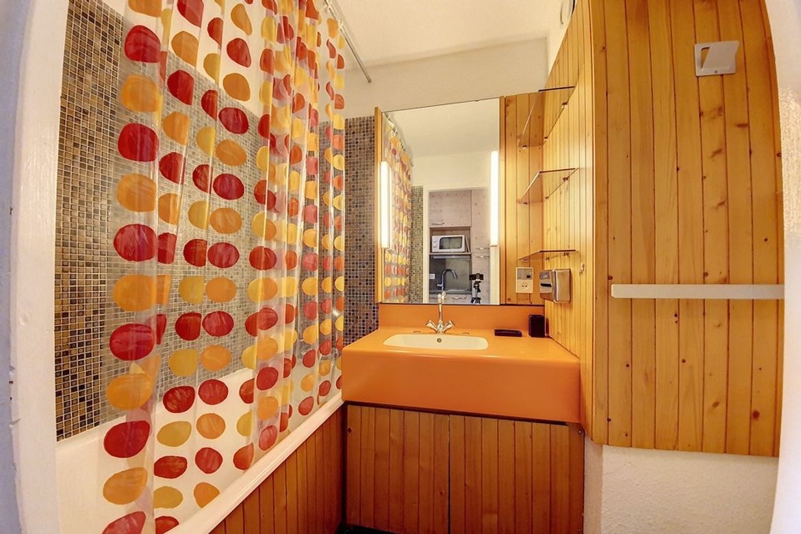 Studio de 17 m² pour 3 personnes avec petit balcon exposé nord. Il est situé au 3ème étage avec ascenseur. Label : 1 Flocon Bronze Séjour : 1 banquette lit 1 personne et 2 lits simples superposés. Equipé d'une télévision. Salle de bains avec baignoire et WC. Cuisine incorporée 2 plaques, réfr...