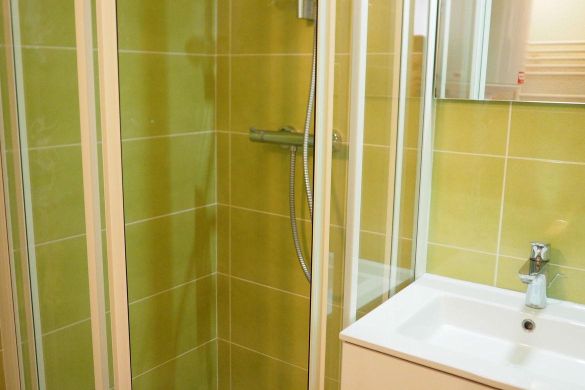 Joli studio de 18 m² pour 2 personnes avec un balcon orienté Sud. Il est situé au Rez de chaussée. Label : 3 flocons Or Séjour : 1 canapé lit rapido pour 2 personnes. Equipé d'télévision. Salle de douche avec lavabo et WC. Cuisine incorporée 2 plaques, Mini- four, réfrigérateur, mini lave-vaiss...