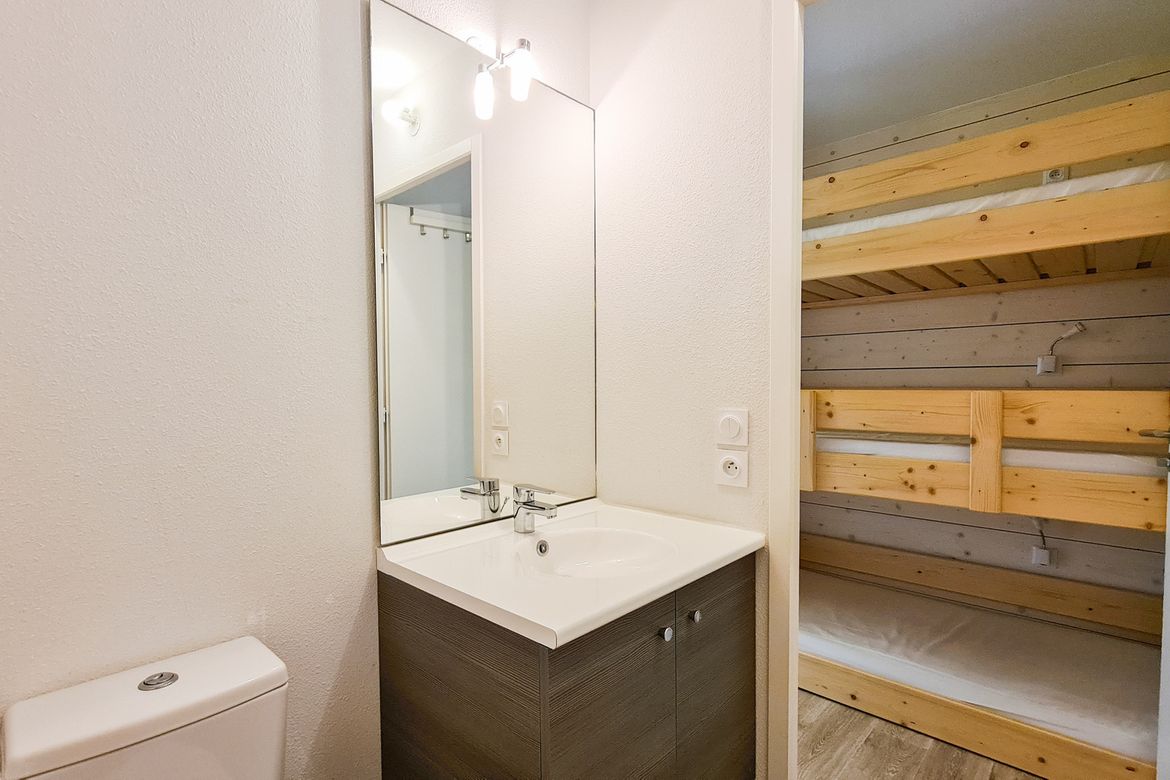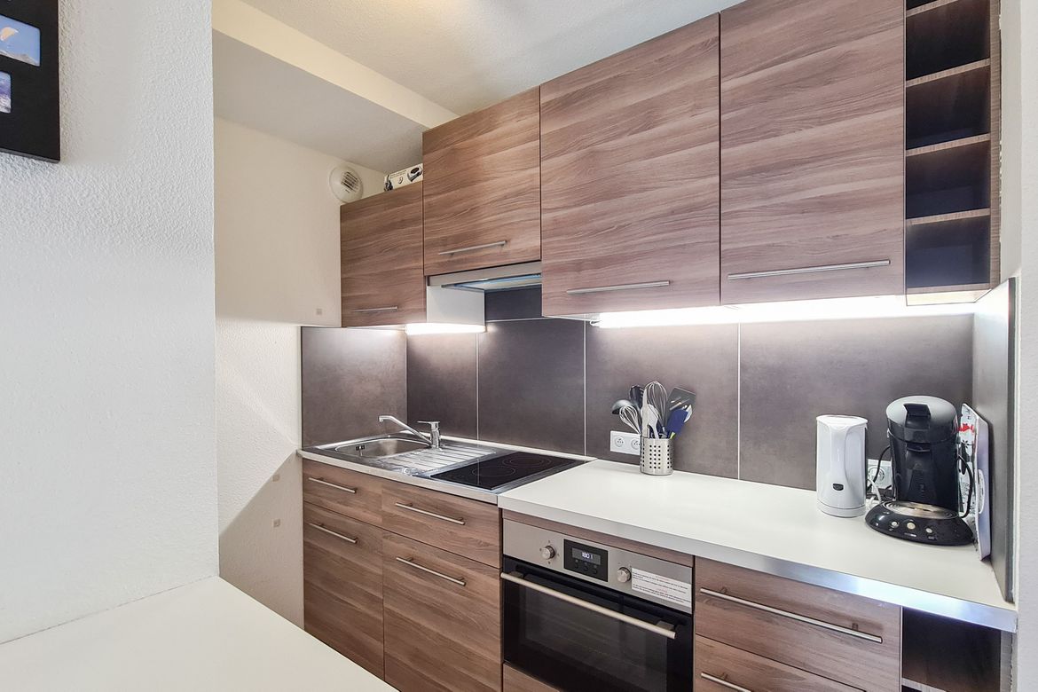 Studio orienté Sud confort 31 m2 au 2e étage totalement neuf. Sol plastique Equipé pour 4 personnes - Cabine fermée : 1 lit superposé - Séjour avec canapé lit 2 places , télévision à écran plat, lecteur DVD - Salle de douche avec toilettes - cuisine dans la salle de séjour avec 2 plaques électriqu...