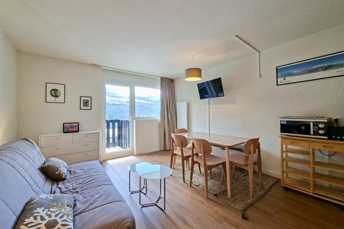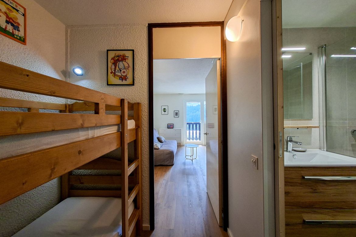 Studio Sud 25 m2 au 2ème étage sans ascenseur, balcon Sud entièrement rénové - Equipé pour 4 personnes - Entrée : 1 jeux de lits superposés - Séjour : 1 canapé lit 2 places - Télévision et enceinte connectée - Salle de bain avec baignoire et toilettes - Kitchenette avec 2 plaques vitrocéramique, ...