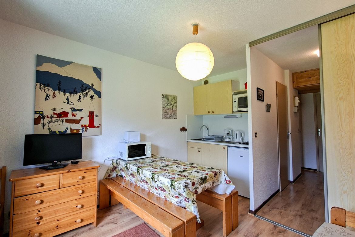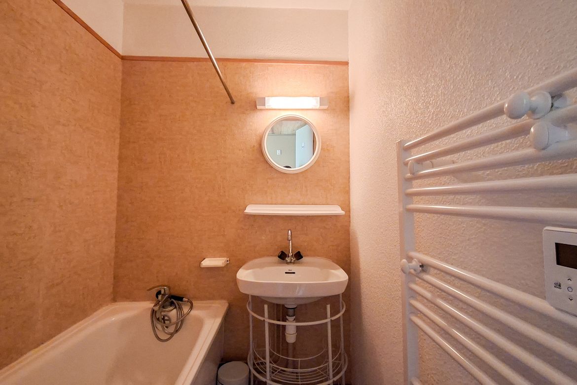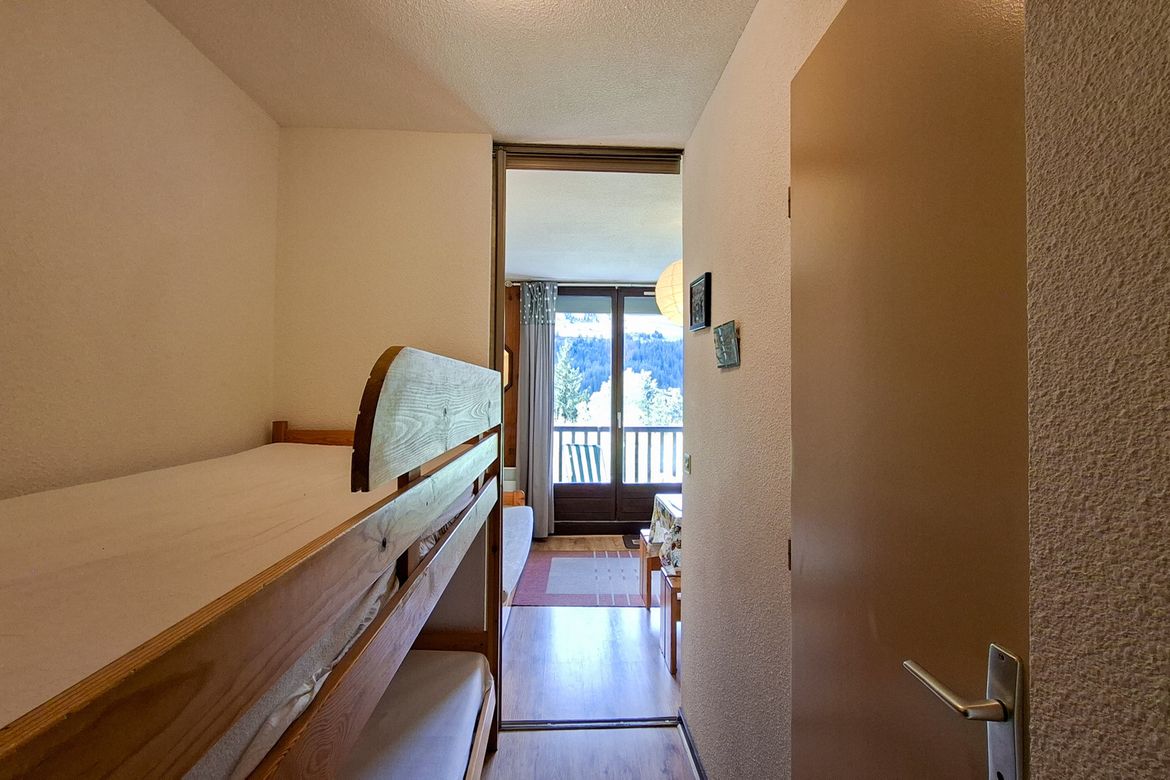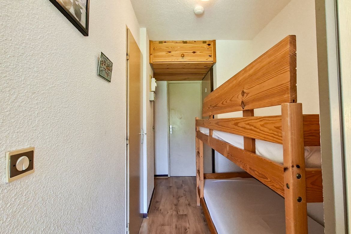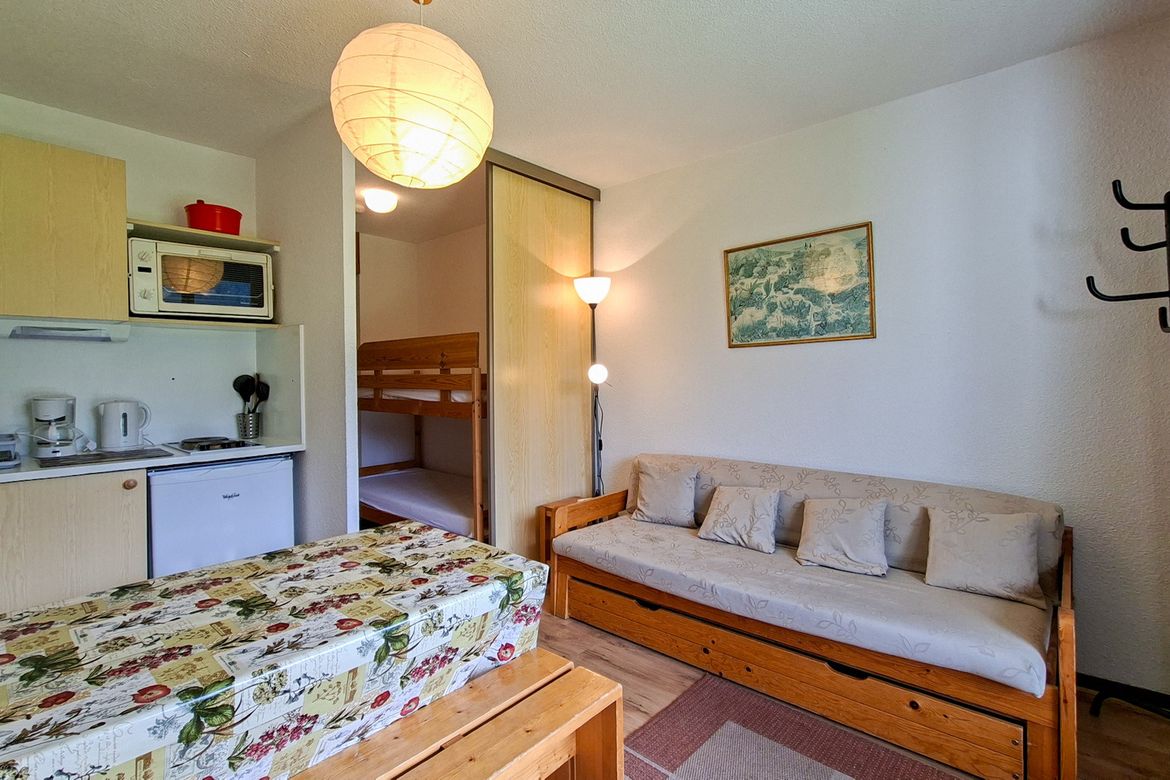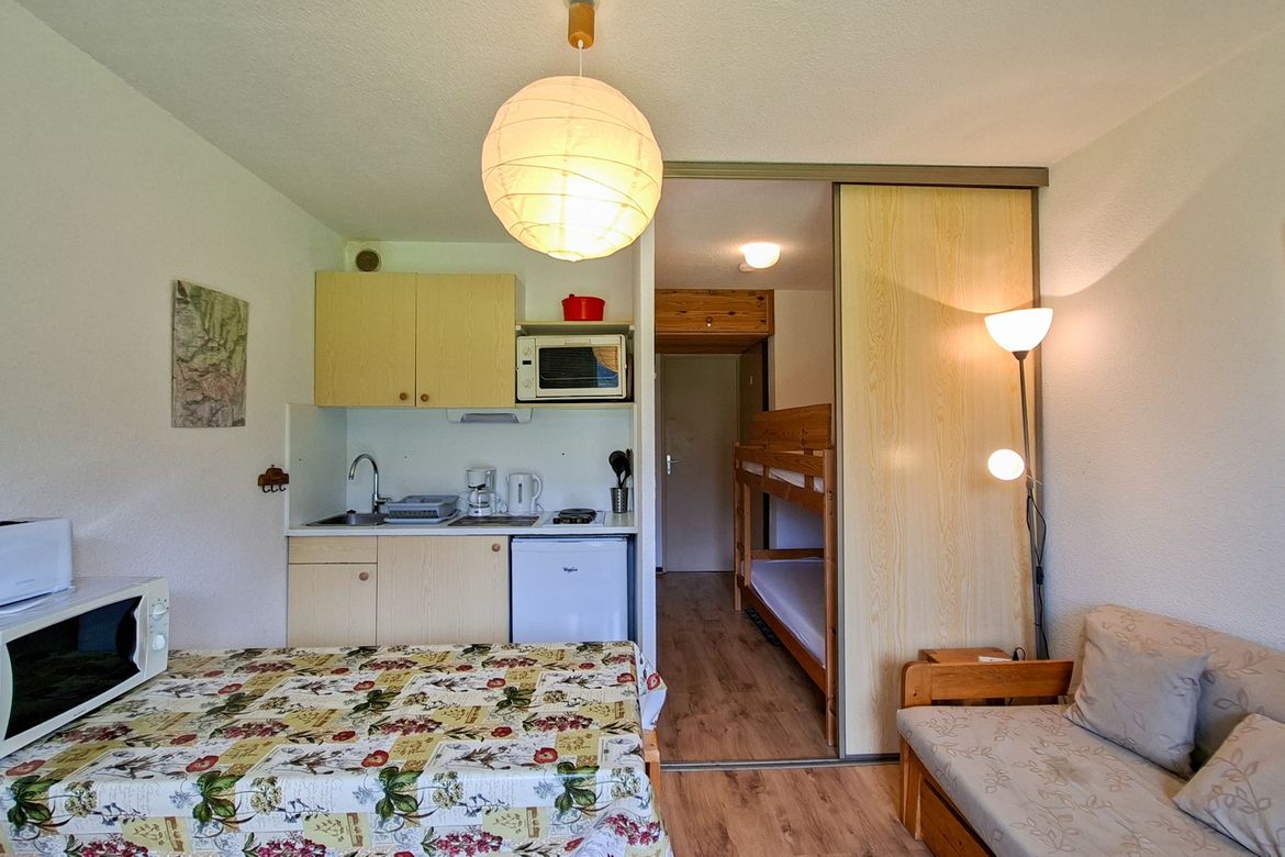 Studio cabine Sud 25 m2 en rez-de-jardin avec balcon - Equipé pour 4 personnes - Cabine : 1 lit double - Entrée: 1 jeu de lits superposés - Télévision écran plat - Salle de bain avec baignoire - Toilettes séparées - Kitchenette avec 2 plaques électriques, micro-onde et four - Literie : couettes - ...