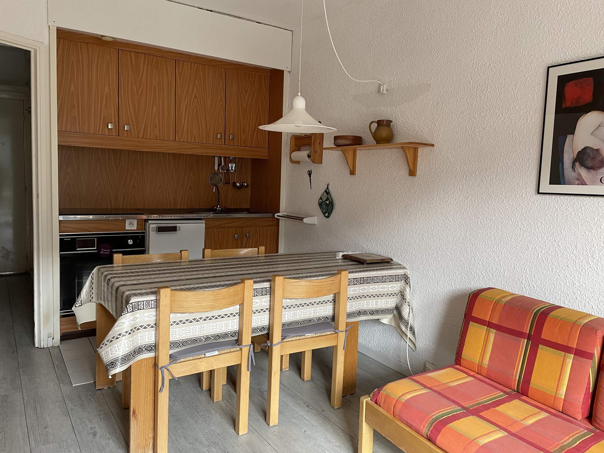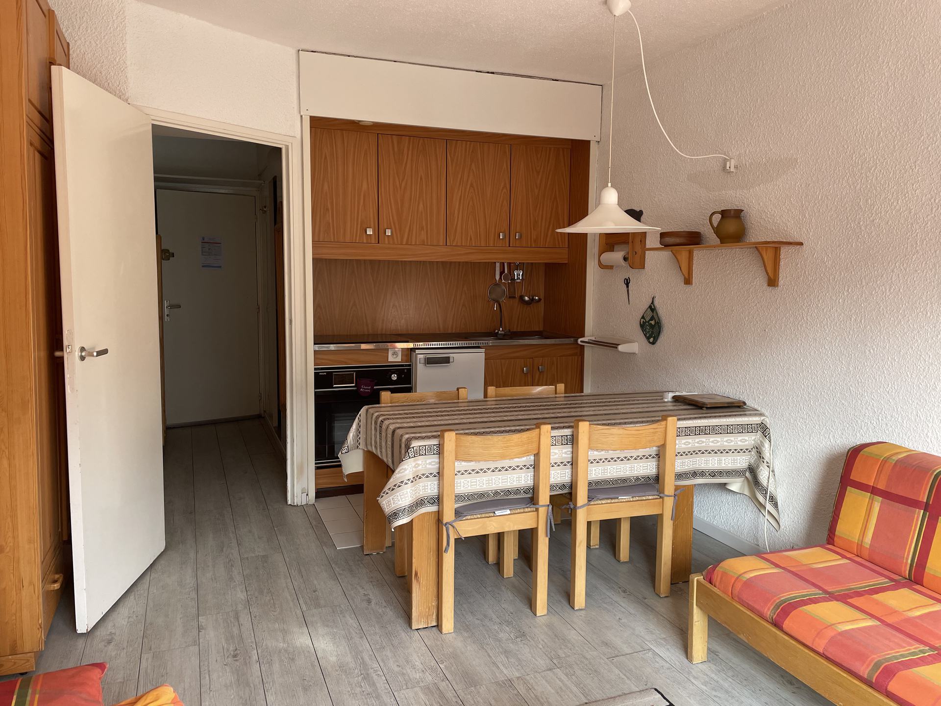 Studio 25 m2 au 5ème étage avec balcon Sud Sol : revêtement plastique - Equipé pour 4 personnes - Entrée : 1 jeux de lits superposés - Séjour : 1 canapé lit 2 places - Grande télévision écran plat - Salle de bain avec baignoire et WC - Kitchenette avec plaque vito céramique, four, micro-onde - Balco...