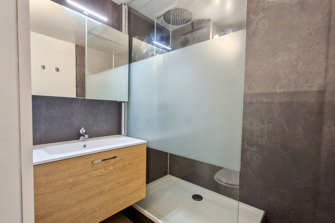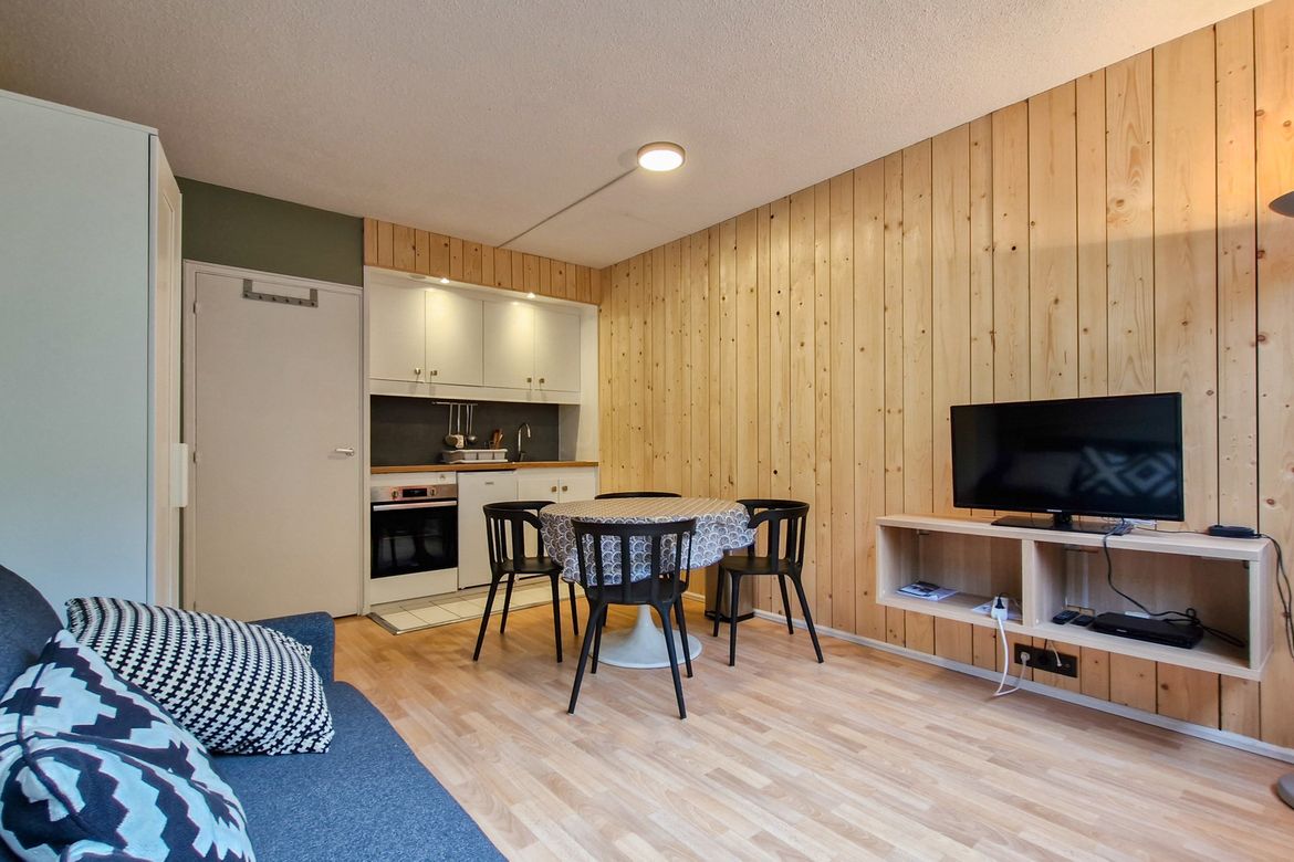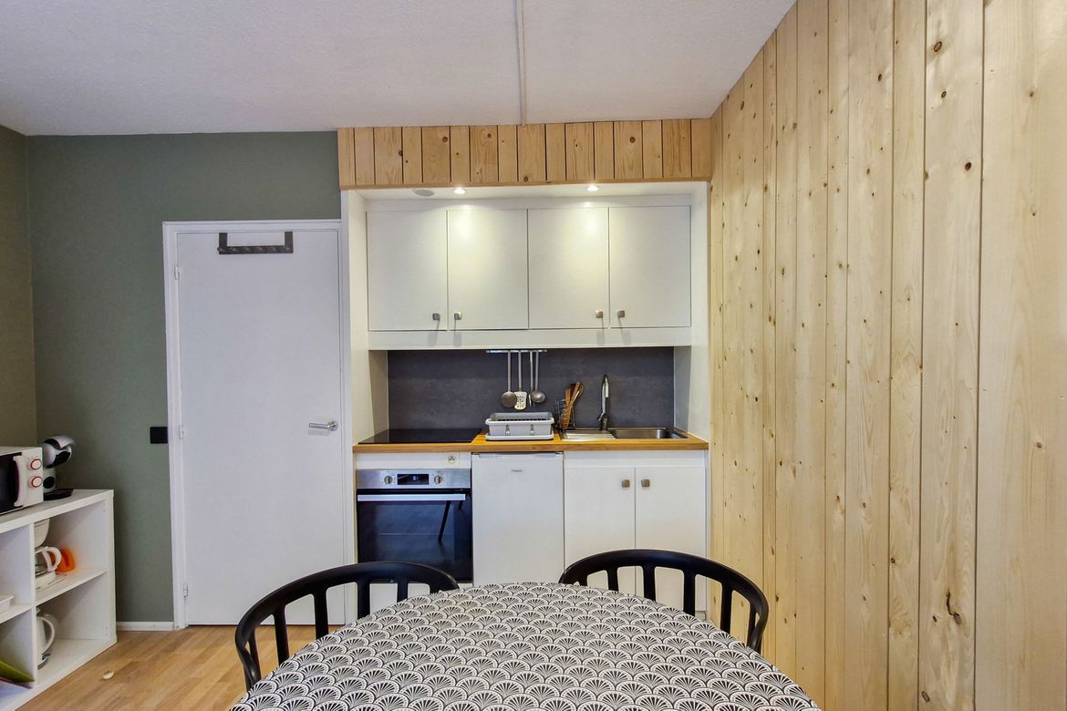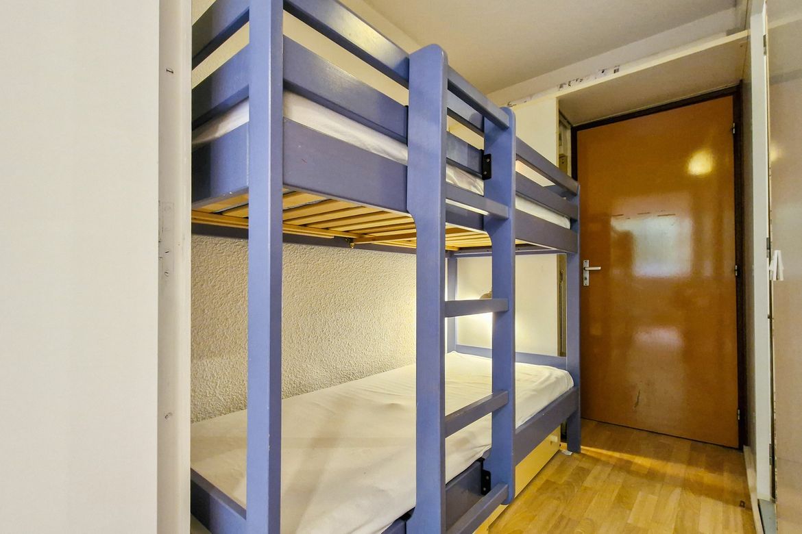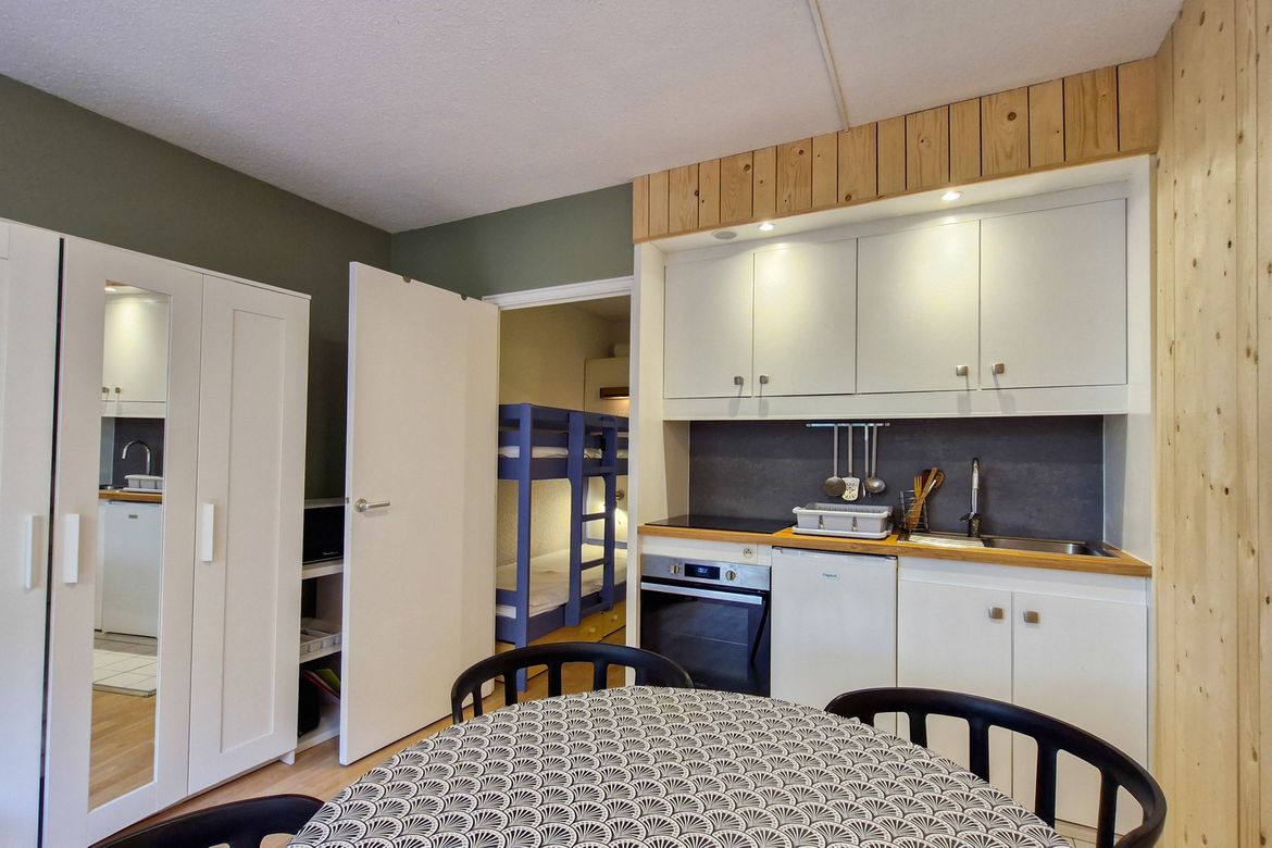 Studio 25 m2 au 3ème étage, Nord sans balcon Sol: linoleum - Equipé pour 4 personnes - Entrée : 1 jeux de lits superposés - Séjour : 1 canapé lit 2 places (140x200cm) - Télévision à écran plat et lecteur DVD - Salle de douche avec toilettes - Kitchenette avec 4 plaques vitrocéramiques, four - Casier...