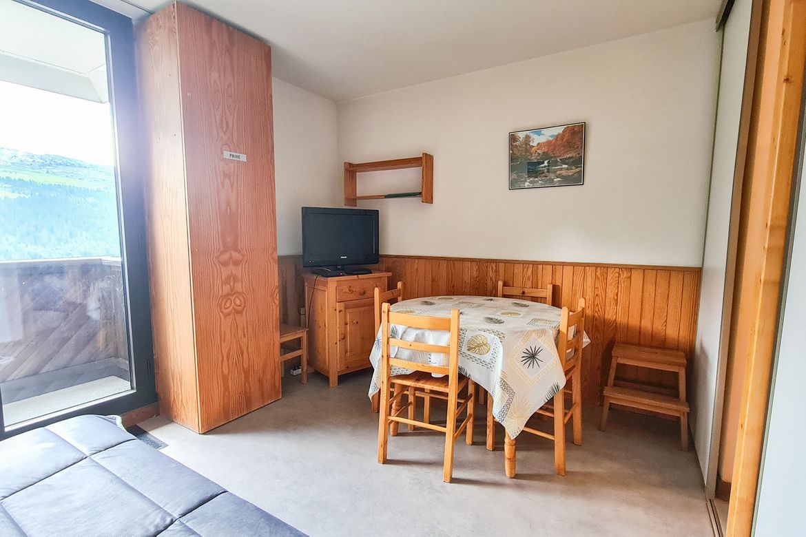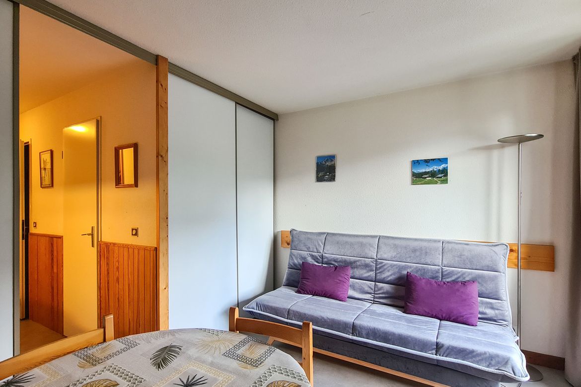Studio cabine Sud 27 m2 au 4ème étage Equipé pour 4 personnes. - Balcon Sud - Cabine : 1 jeu de lits superposés - Séjour: 1 canapé lit 2 places - Télévision écran plat - Salle de bain avec baignoire - Toilettes séparées - Kitchenette avec 2 plaques électriques, four multifonctions, lave-vaissell...