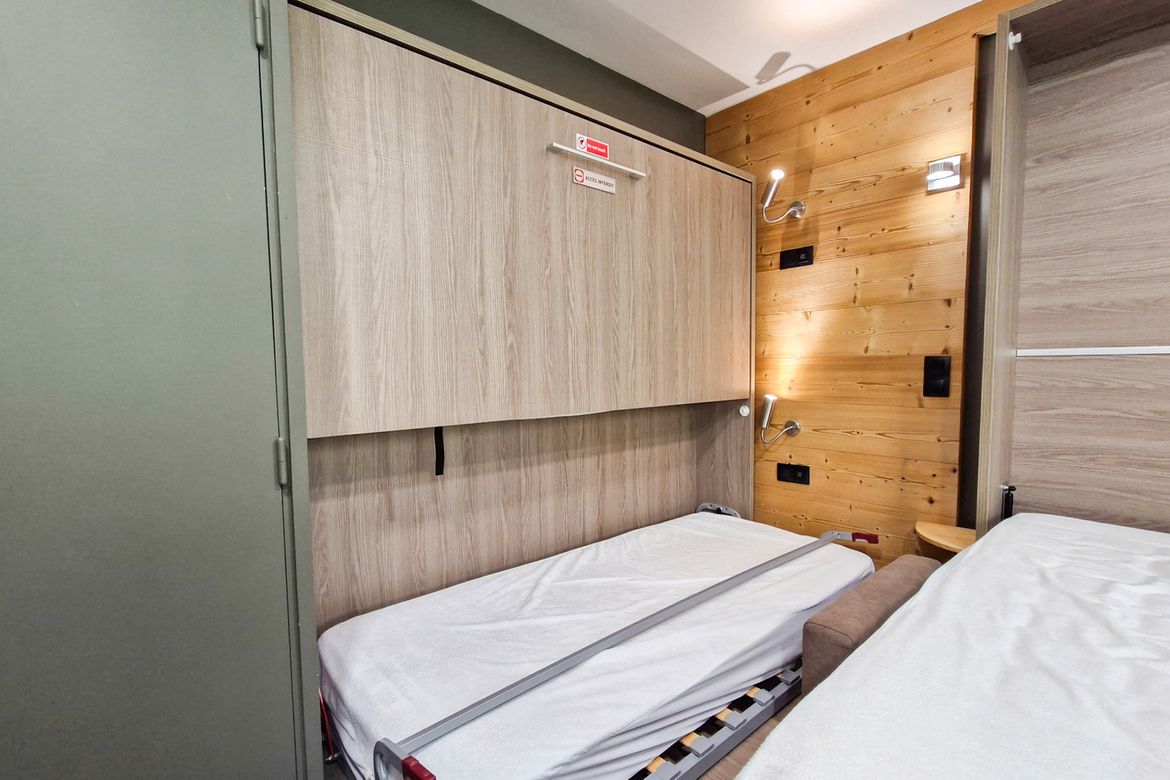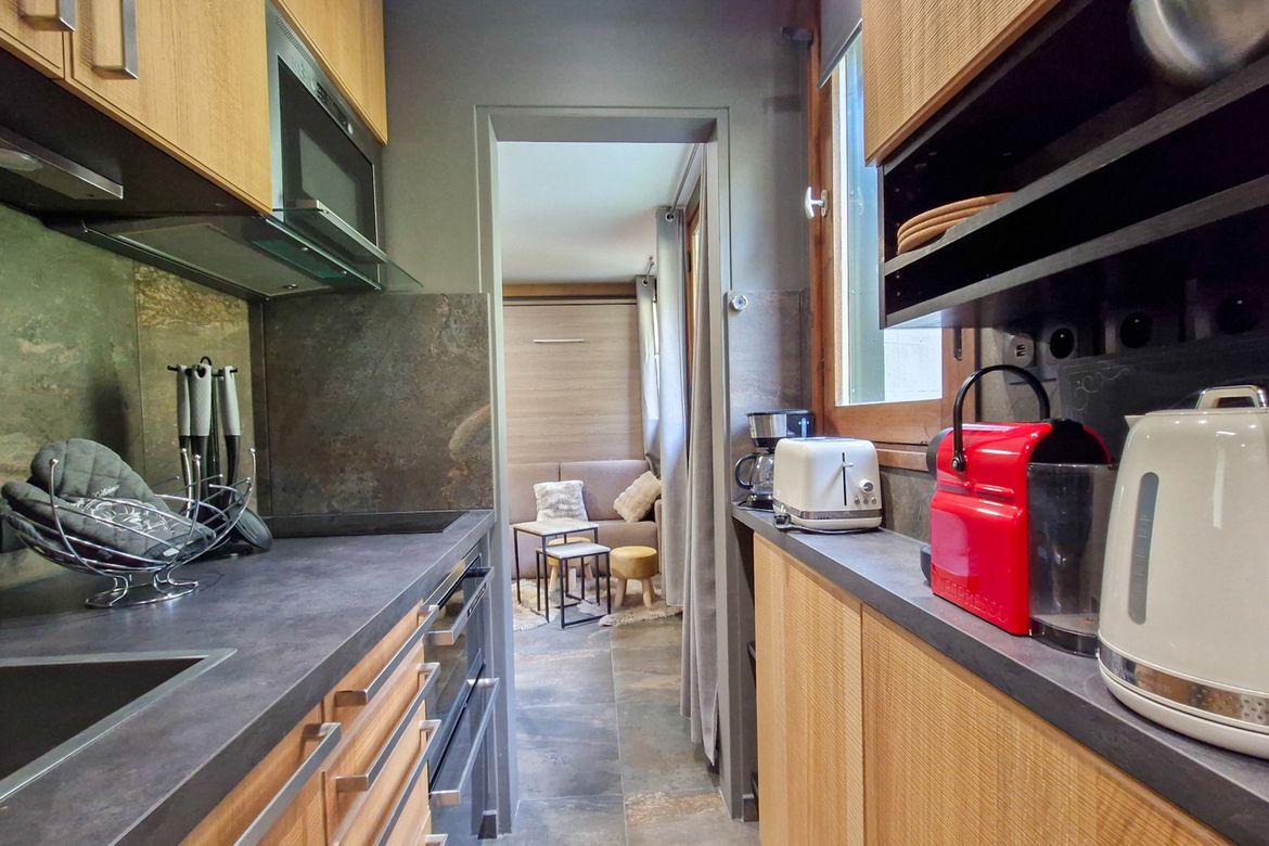 Studio orienté Nord 25 m2 au 3ème étage entièrement renové - Equipé pour 4personnes - Kitchenette 2 plaques à induction, four, micro-onde, mini lave-vaisselle, hotte, cafetière Nespresso - Séjour : 2 lits doubles rabattable et un lit simple rabattable - Télévision écran plat - Salle de douche avec t...