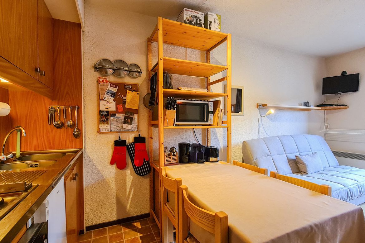 Studio 25 m2 au 1er étage avec balcon Sud Sol : moquette - Equipé pour 4 personnes - Entrée : 1 jeux de lits superposés - Séjour : 1 canapé lit 2 places, TV et lecteur DVD - Salle de bain avec baignoire et WC - Kitchenette avec 4 plaques électriques, four, micro-onde combiné, cafetière Nespresso - B...