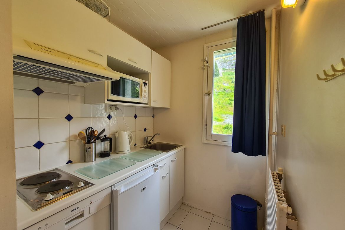 Studio confort 28 m2 au 6ème étage avec balcon Est Sol carrelé - Equipé pour 4 personnes - Cabine : 1 jeux de lits superposés - Séjour : 1 canapé lit 2 places - Télévision à écran plat avec lecteur DVD - Salle de bain avec baignoire et WC - Kitchenette avec micro-onde et lave-vaisselle - Casier ...