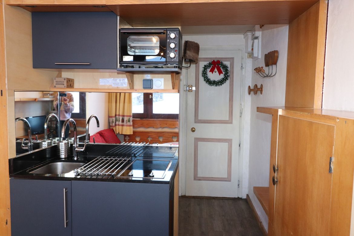 GAMME ESSENTIELLE Studette de 12m² équipée pour 2 personnes et située au 11ème étage avec ascenseur de la résidence "Le Palafour", au cœur de Tignes Le Lac. Au pied des pistes et écoles de ski. Exposition Nord sans balcon. Comprenant : Séjour avec unlit-gigogne (2couchages simples) et télévision K...