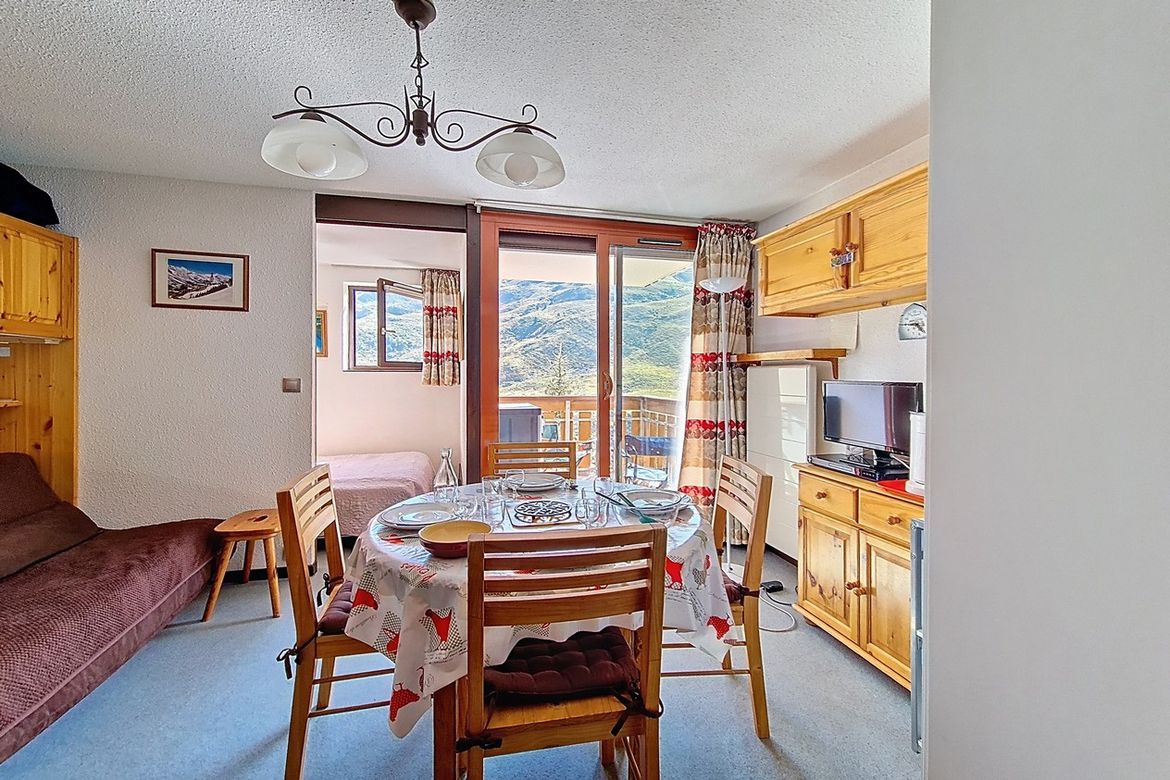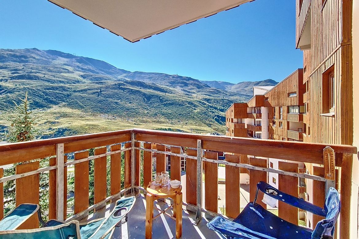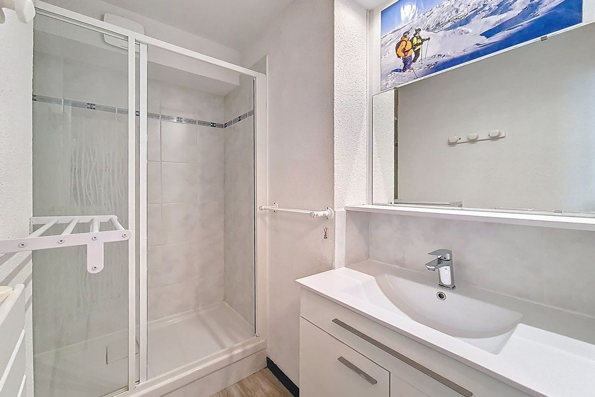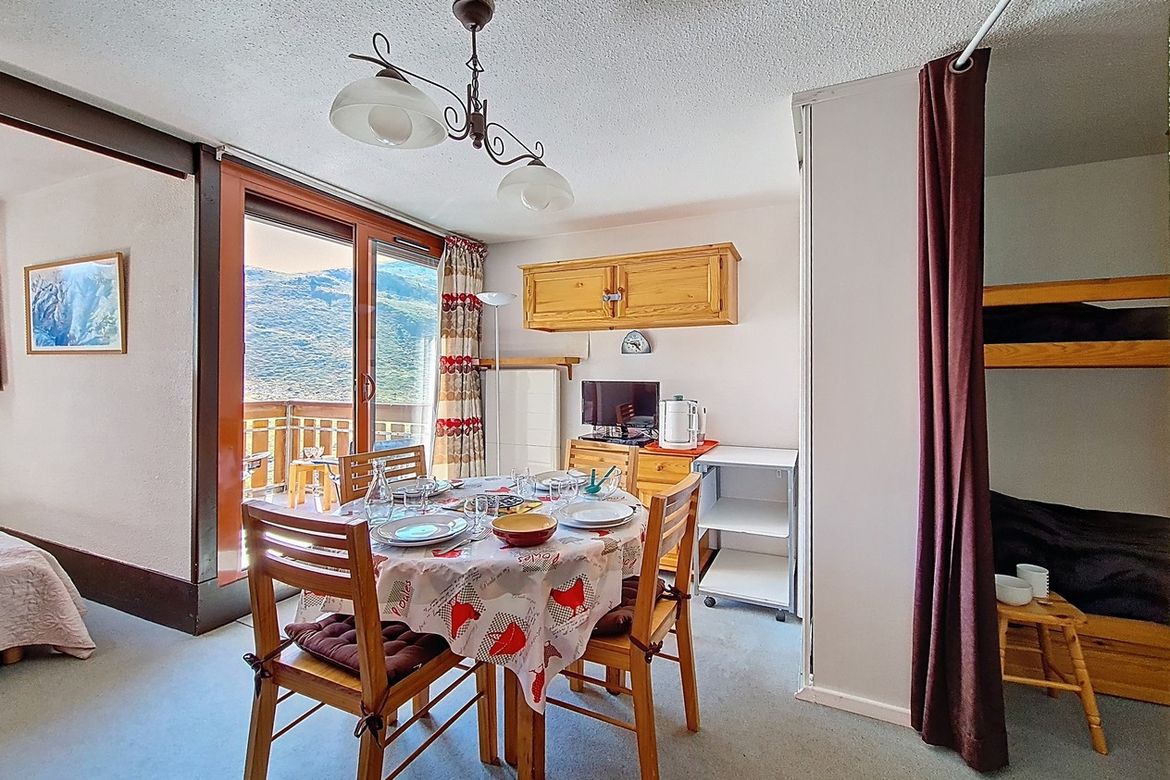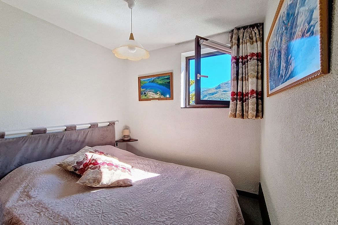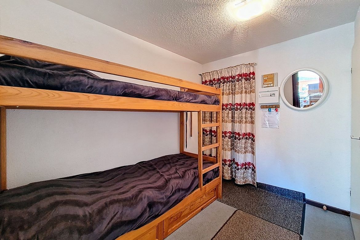 Appartement de 2 pièces avec cabine de 27m² pour 4 personnes. Il est situé au 5ème étage avec un balcon exposé Sud-Ouest. Il est équipé de volets roulants. Label : 1 flocon Argent. Séjour : 1 canapé . Equipé d'une télévision. Cabine (séparée de l'entrée par une rideau) : 2 lits 1 personne superpo...