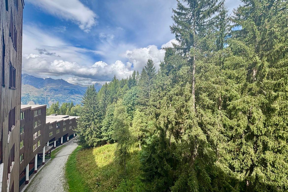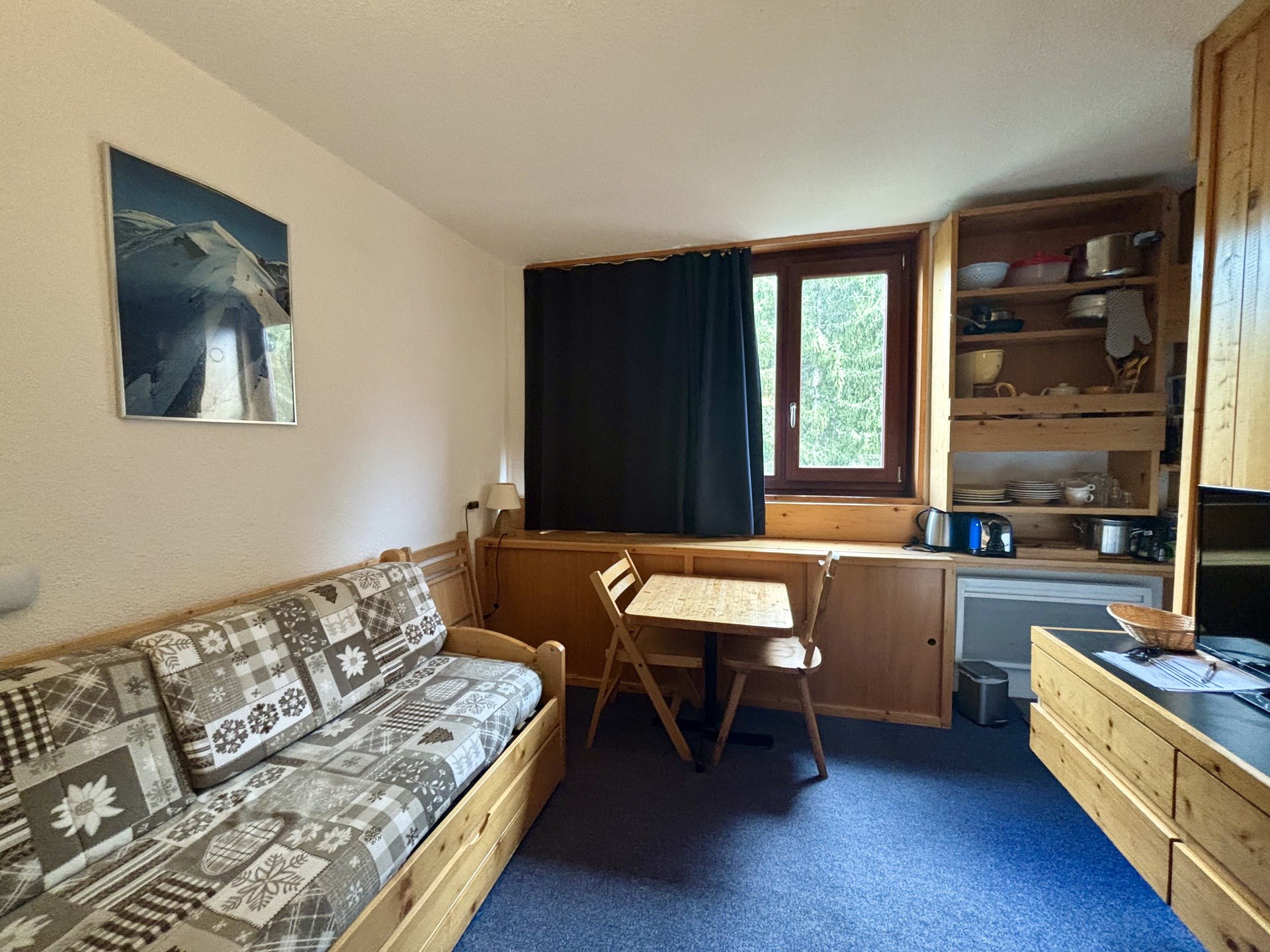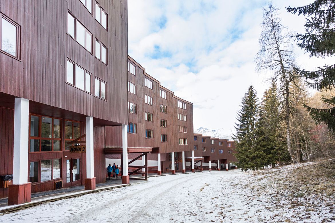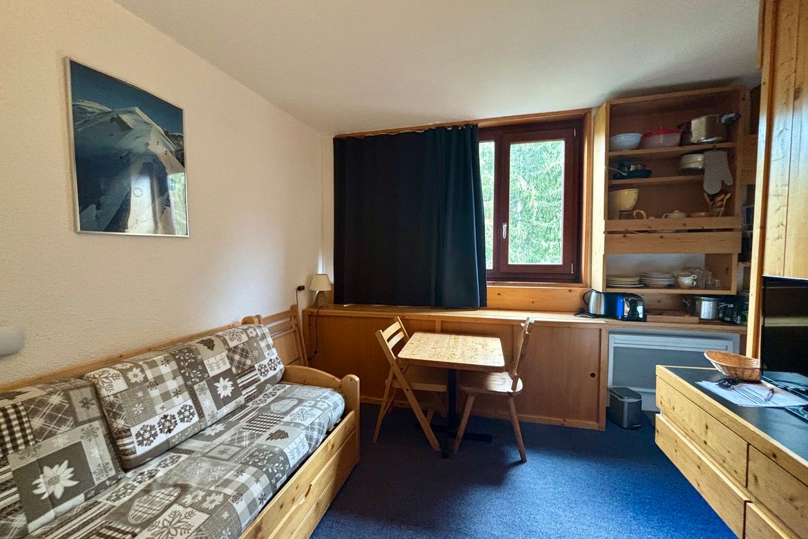 Studette de 13m², meublée pour deux personnes, située au 10ème étage de la résidence Nova 3, au coeur de la station, exposition Nord et pas de balcon Séjour équipé d'une banquette lit et d'un lit gigogne en 80cm et une TV Kitchenette comprenant : 2 plaques électriques, four combiné (micro-ondes + ...