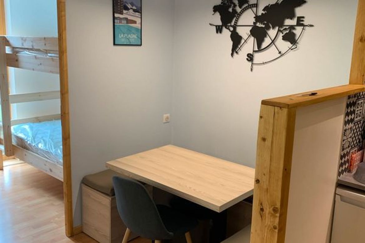 Appartement récemment rénové 2 pièces pour 4 personnes de 28m² au centre station Il est situé en exposition nord au 2ème étage avec un balcon dans la résidence Carroley A et n'a pas de vue sur les pistes. Locations uniquement du dimanche au dimanche Cuisine ouverte sur le séjour avec un four tra...