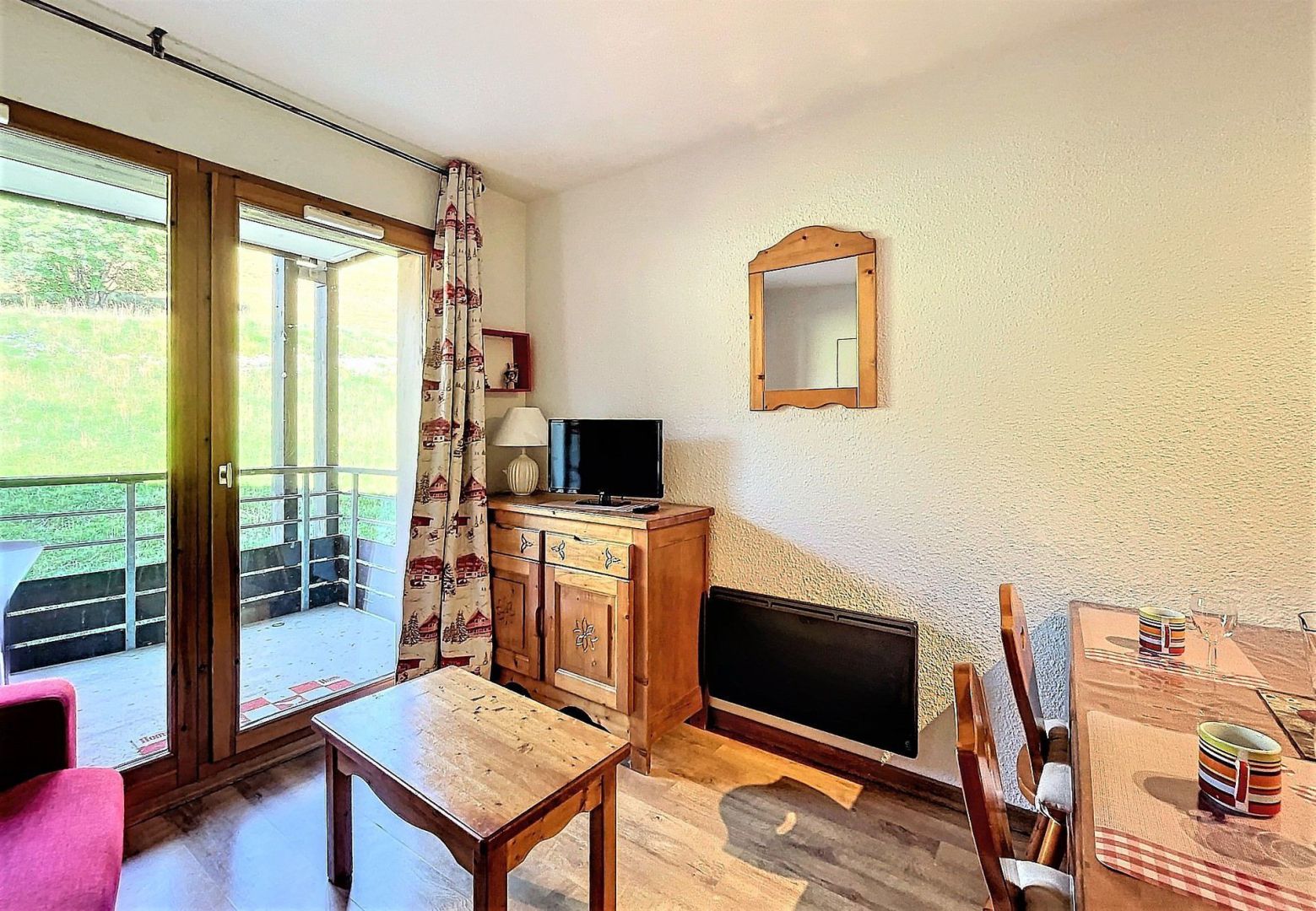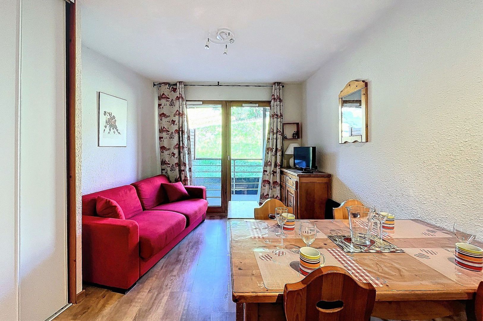 A saisir, beau T2 lumineux dans résidence les Pistes. Il se compose d'une pièce à vivre équipée de meubles en pin, canapé gigogne 2 personnes, TV, une kitchenette équipée d'un lave vaisselles, micro-ondes. Salle de bains, WC séparé. Une chambre avec rangement, 2 lits côte à côte. Balcon plein s...