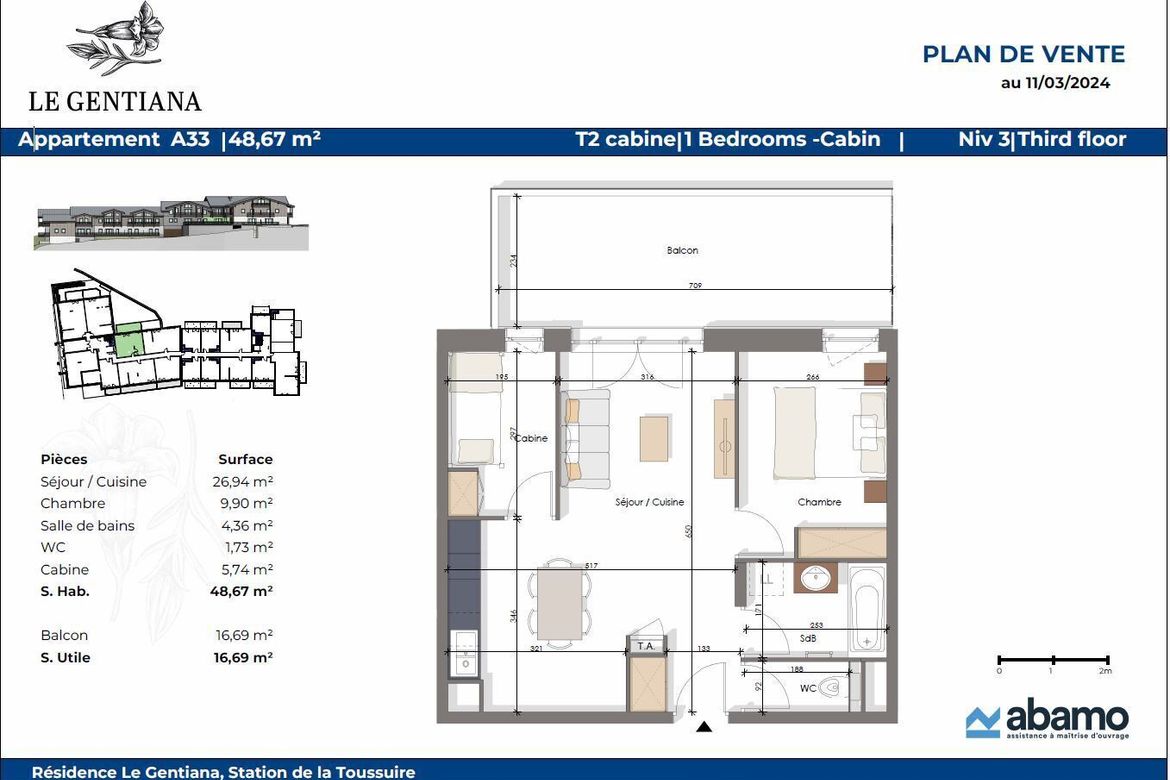 APPARTEMENT T2 Cabine - 48.67m² - 1 CHAMBRE - 1 CABINE + BALCON - Réf G2C - A33 Vous recherchez un projet d'investissement sur La Toussuire, au coeur du domaine des Sybelles, 4eme domaine de France. Nous vous proposons une opportunité unique de choisir en avant-première, un appartement de prestige...