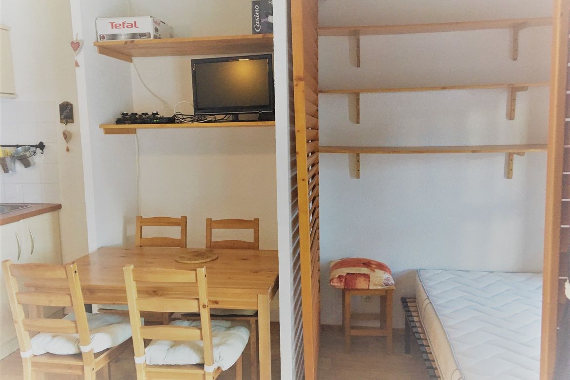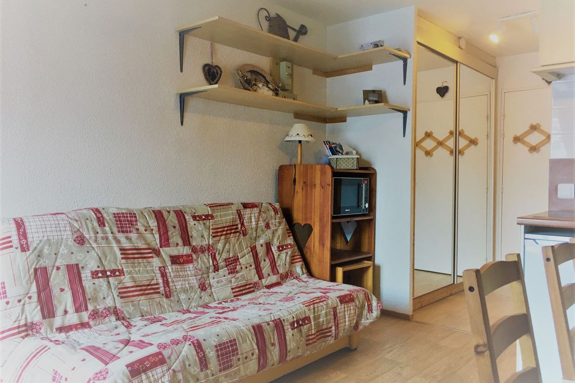 Deux pièces meublées et équipées pour 4 personnes, d'une superficie de 24m², situé au centre de la station d'Arc 2000, dans la résidence Fond Blanc au 4ème étage, balcon. Composé d'un séjour avec un canapé clic-clac et d'un lit double en 140cm dans la chambre semi-fermée. Et TV. Kitchenette comp...