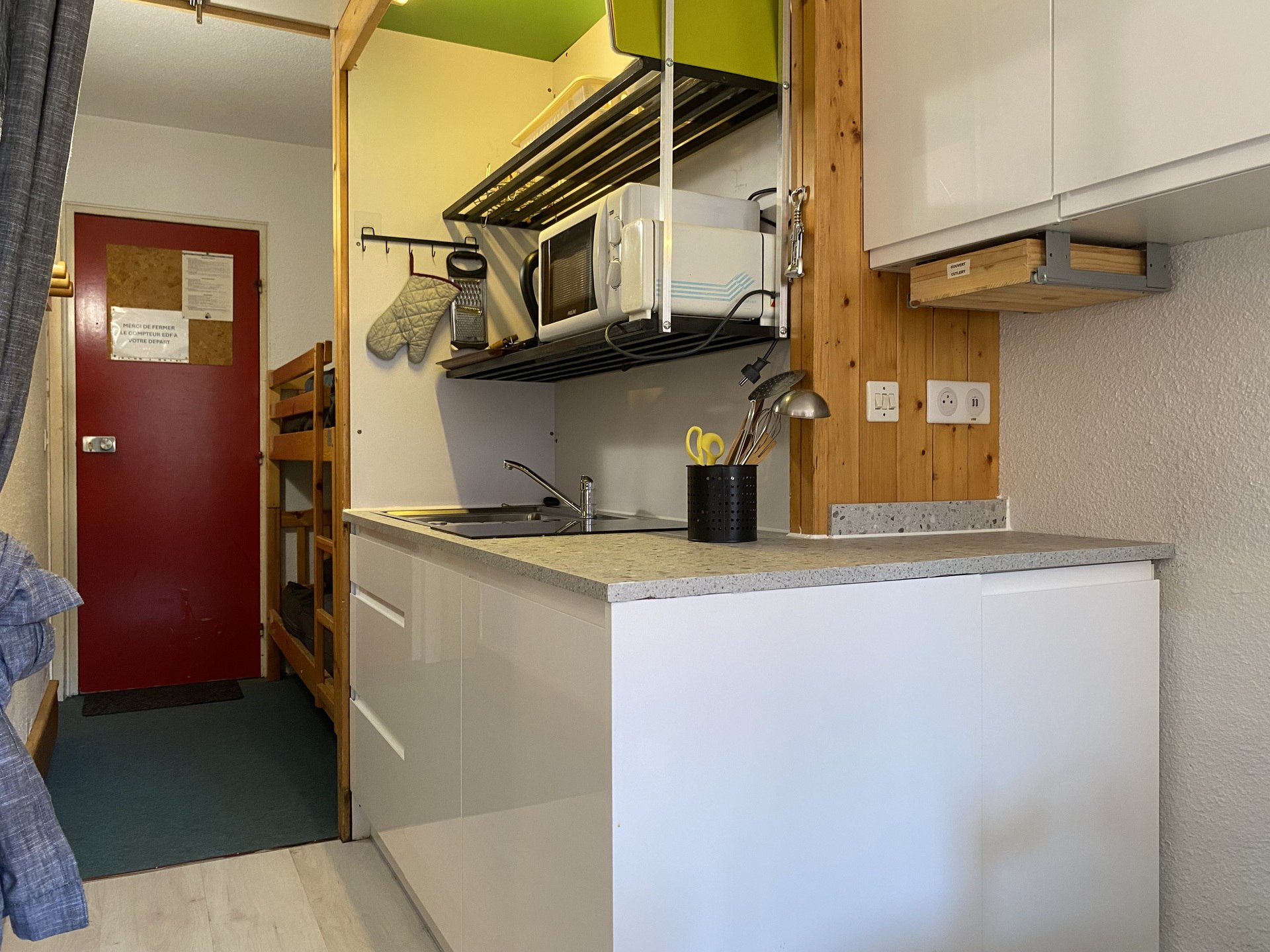 Situé au 4ème étage de la résidence Armoise, au calme secteur des Villards, studio 3 personnes de 19m², avec balcon exposé nord est. Studio avec l'entrée un coin cabine composé d'un lit simple, toilettes séparées. Une cabine de douche type "bateau". Dans le séjour, un canapé lit clic clac, une pe...