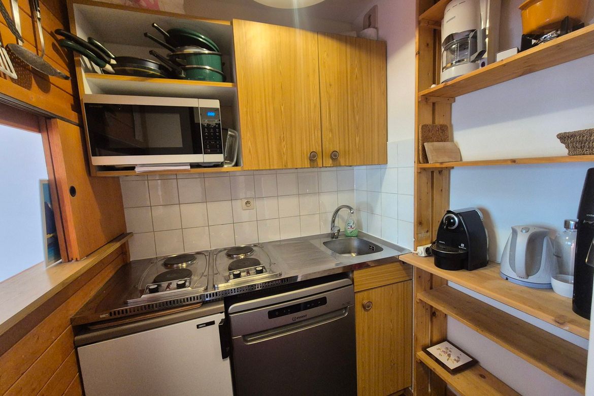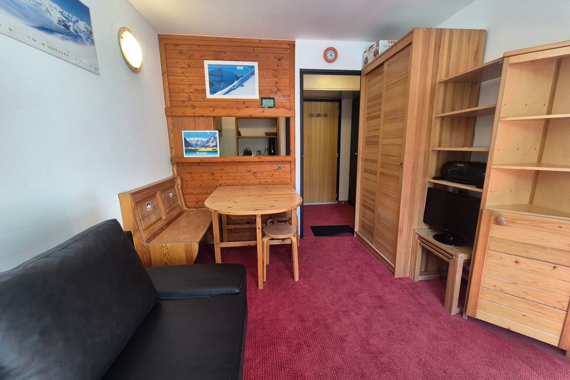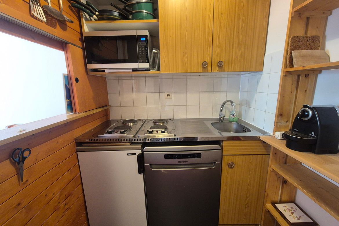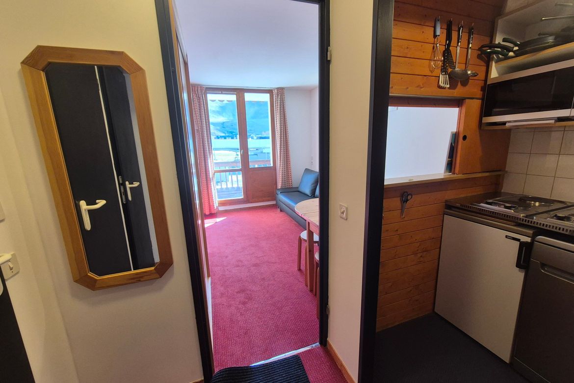 GAMME CONFORT Studio cabine de 27 m2 équippé pour 4 personnes et situé au 1er étage avec ascenseur dans la résidence "Le Rond Point des Pistes C" à Tignes Val Claret. Ski aux pieds Exposition Sud avec balcon. Comprenant : Cuisine équipé avec lave-vaisselle, micro-ondes, plaques vitrocéramiques. S...
