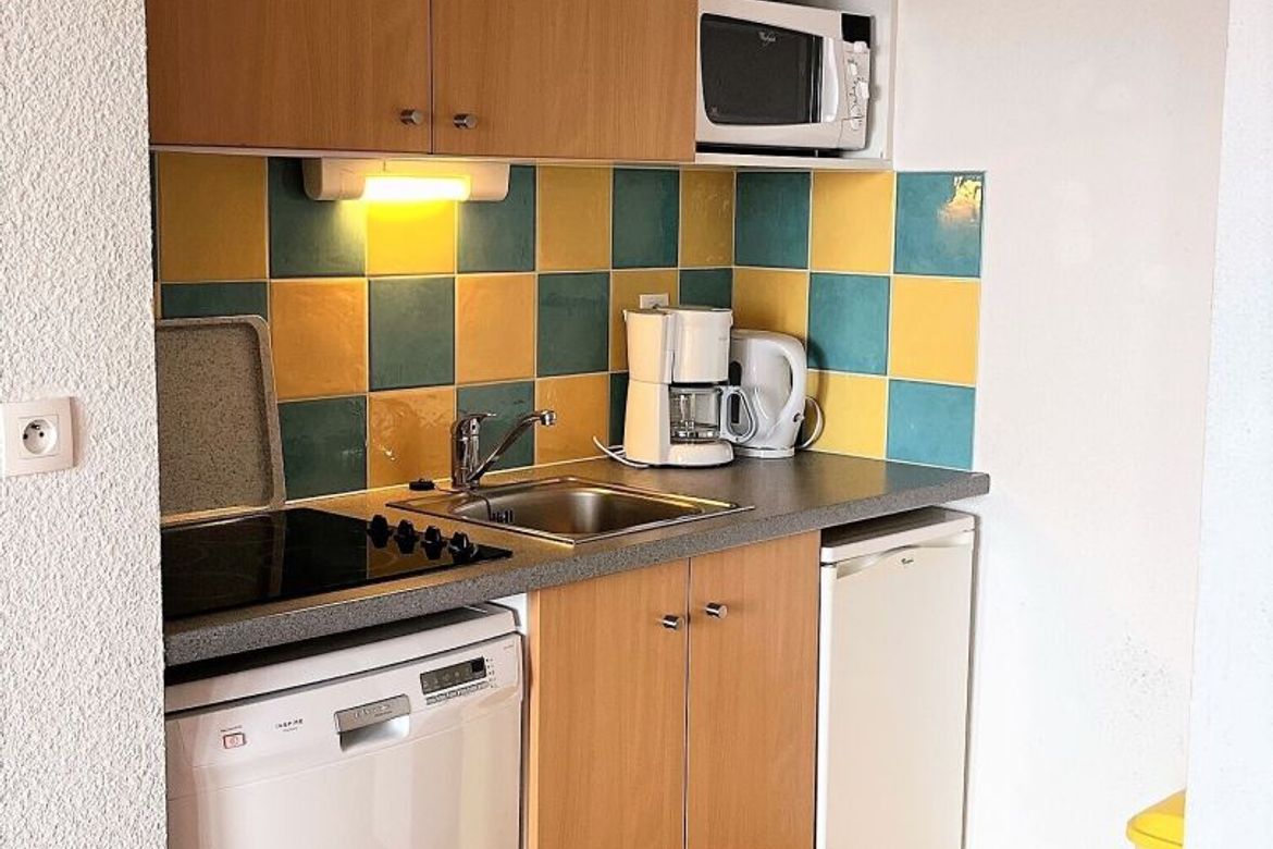 Appartement T2 équipé pour 4 personnes, comprenant : une pièce à vivre lumineuse. cet appartement a un coin cuisine équipé d'un lave vaisselle, plaque vitro, micro-ondes. Un balcon vue montagne côté N/E. Une chambre pour 2 personnes, avec rangement. Salle de bains, wc séparé.