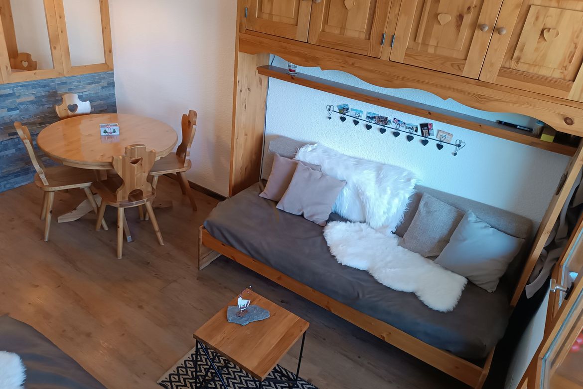 Situé dans la résidence 4DE aux Coches, à 300m des commerces et des pistes. Studio rénové et décoré avec goût. D'une superficie de 22m2 pour 4 personnes situé au 4ème étage avec balcon. Ce superbe studio avec une belle vue dégagée sur la vallée se compose d'une kitchenette équipée (de plaques vitr...