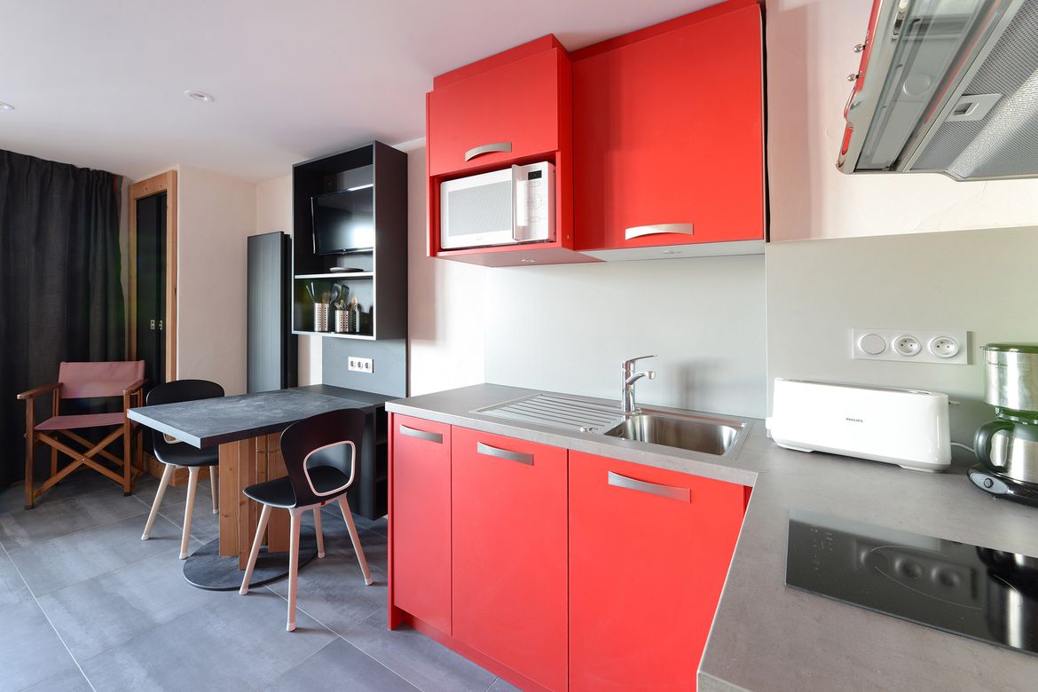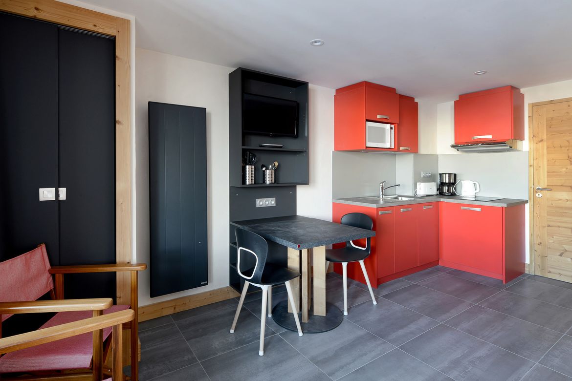 Studio 2 personnes de 21m², rénové en 2018 Il est situé au 2ème étage, exposition EST avec un balcon Séjour: 1 lit banquette 1 personne + 1 lit gigogne, 1 Télévision écran plat Cuisine ouverte : 2 plaques vitrocéramiques, four micro-onde multifonctions, réfrigérateur et lave vaisselle. Salle de...